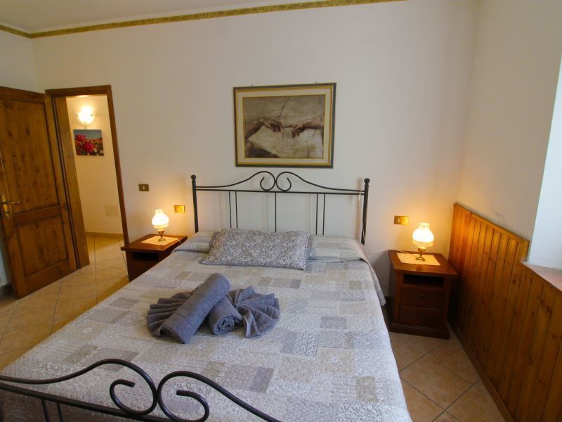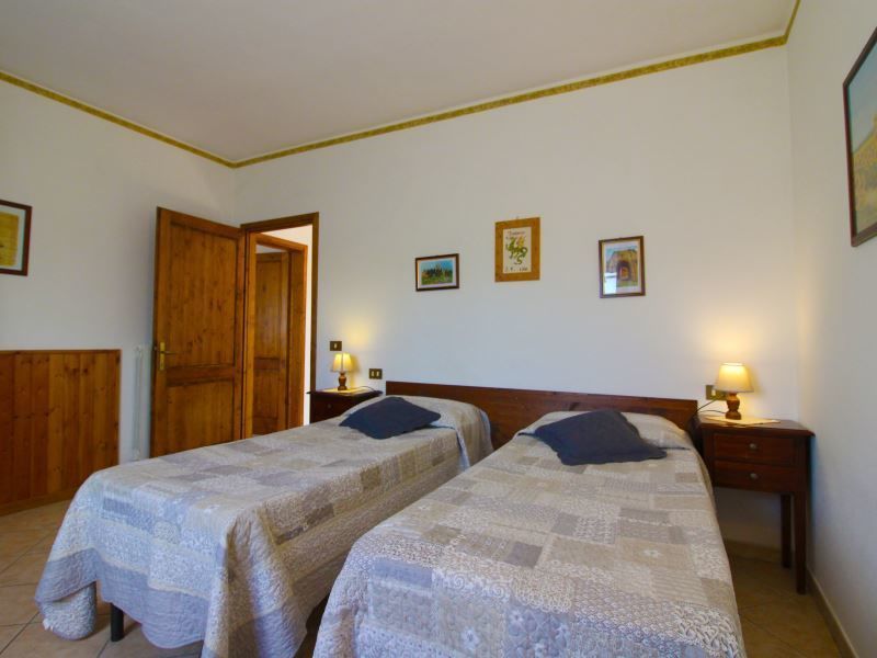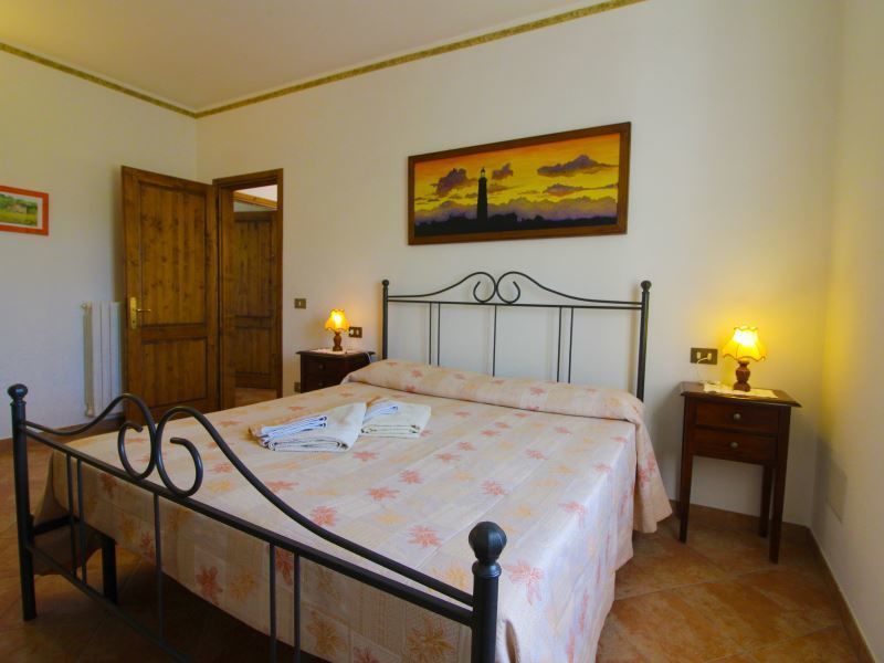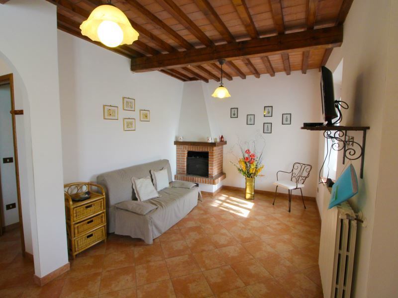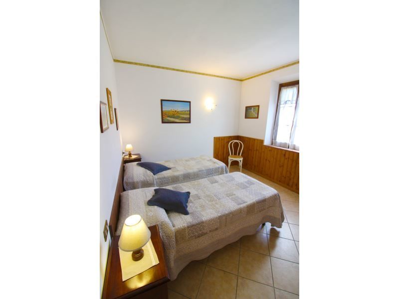 Appartamento al piano primo con ingresso da scala esterna, composto da ampio soggiorno-pranzo con angolo cottura, camino e divano, camera matrimoniale, camera con due letti singoli e bagno con doccia.