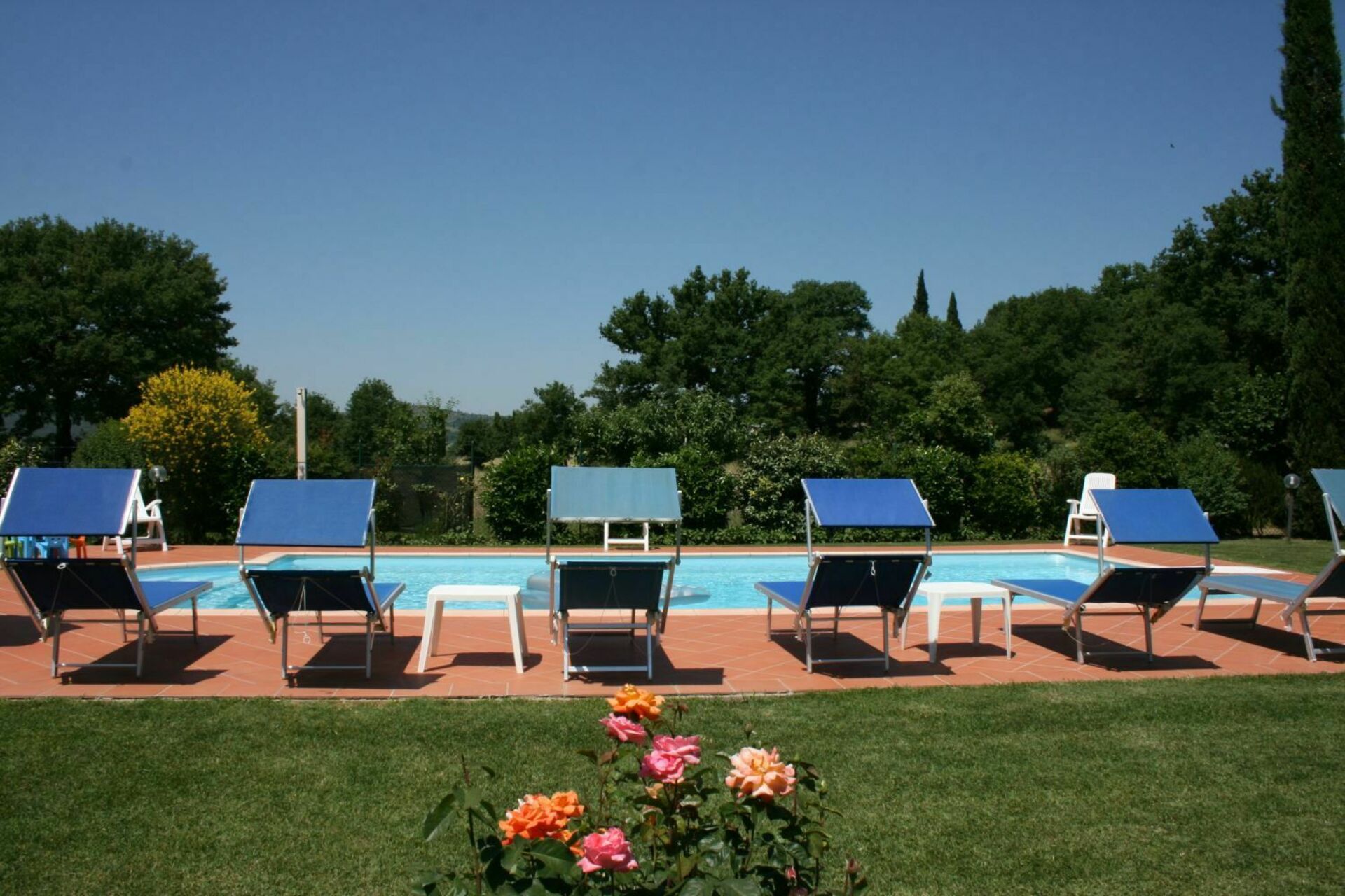 Verde giardino recintato, piscina in posizione soleggiata. Intorno alla casa un ampio spazio verde interamente recintato ed attrezzato con mobili da giardino, dove in posizione soleggiata si trova la piscina (dim. m. 5x10, profondità m. 1,20-1,65). A disposizione degli ospiti il barbecue ed il locale lavanderia. La casa è arredata in modo razionale e confortevole e potrà essere un sicuro punto di riferimento per visitare le più belle località della Toscana e dell'Italia centrale.