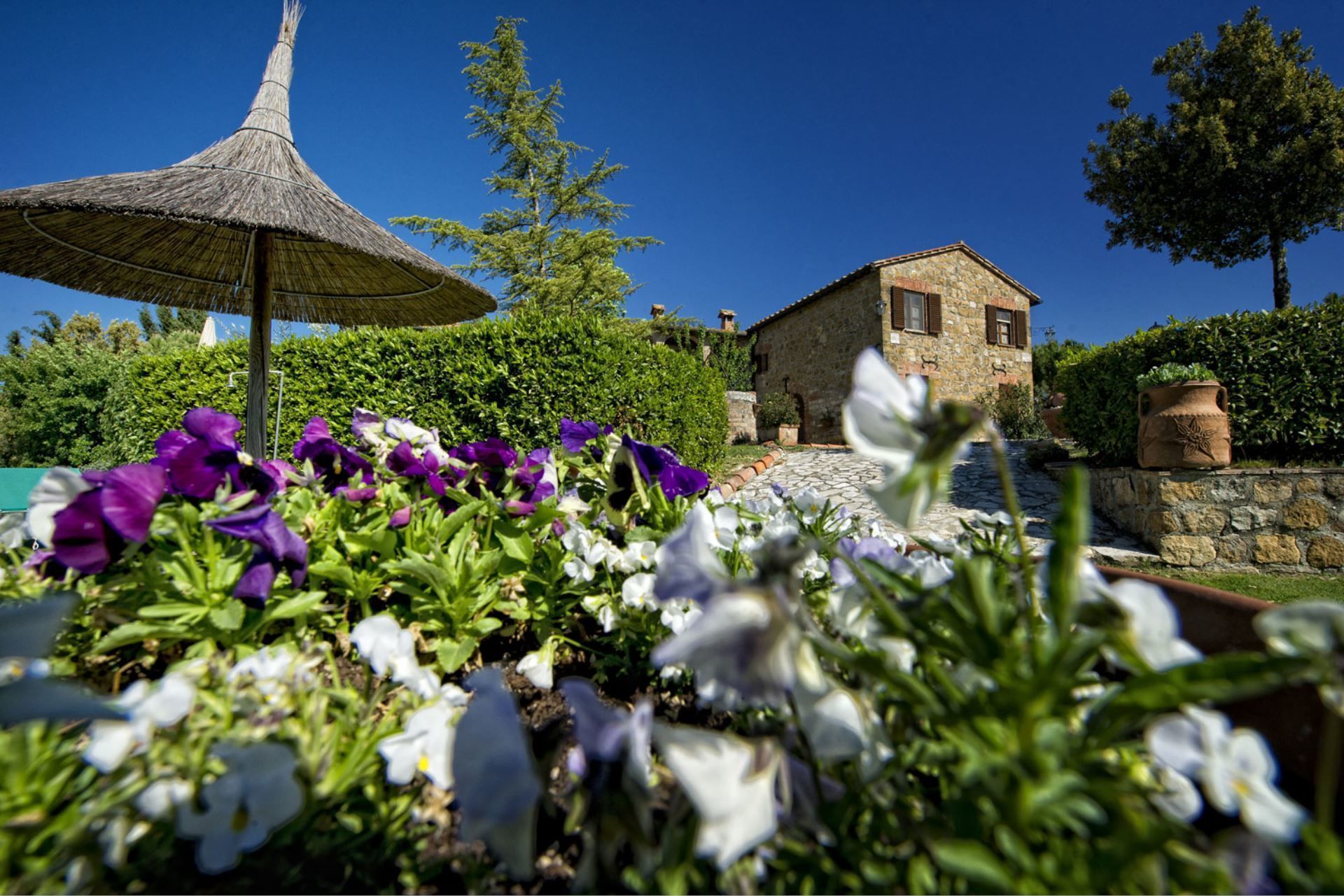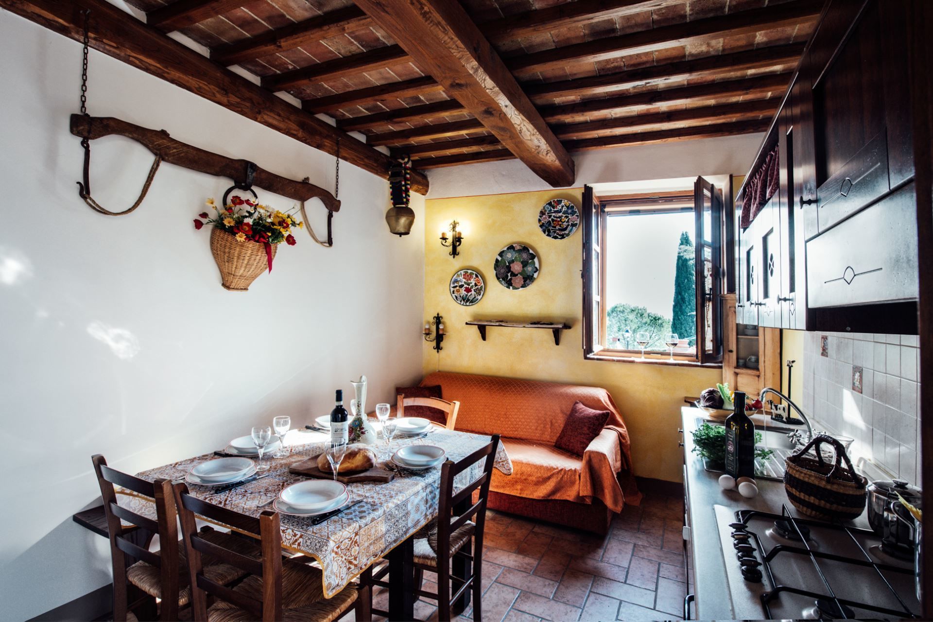 Appartamento nella casa principale posto a piano terra con soggiorno-pranzo con angolo cottura e divano letto alla francese, due camere matrimoniali, bagno con doccia.