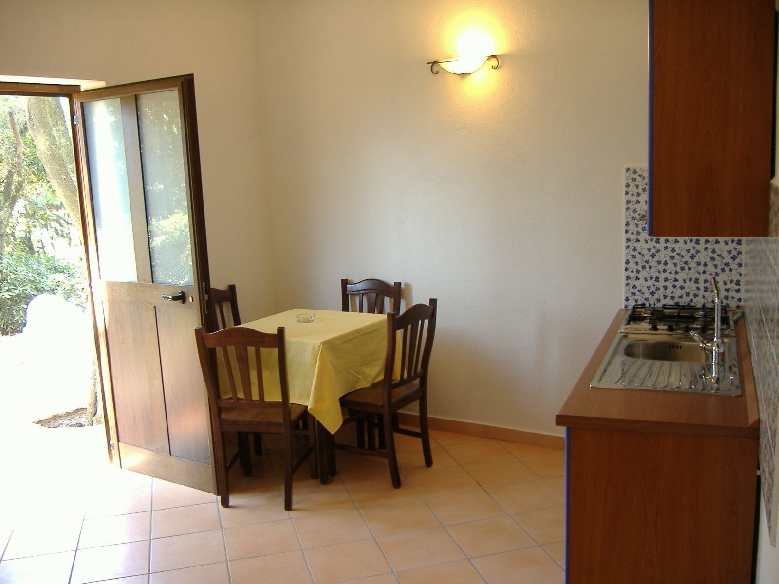 soggiorno con angolo cottura e divano letto matrimoniale