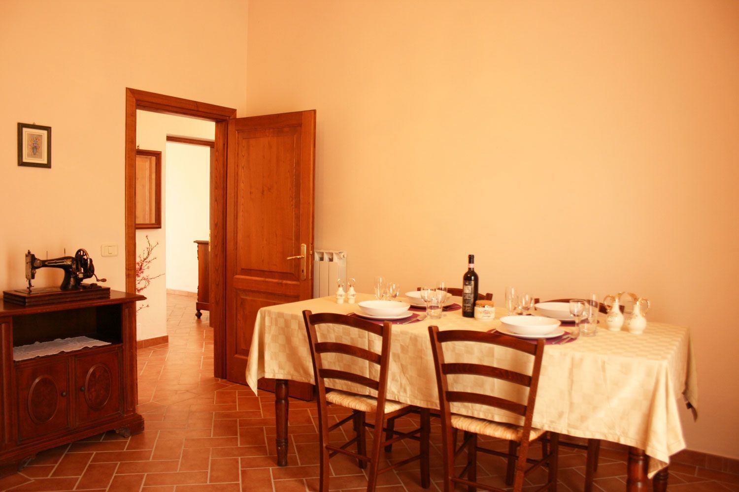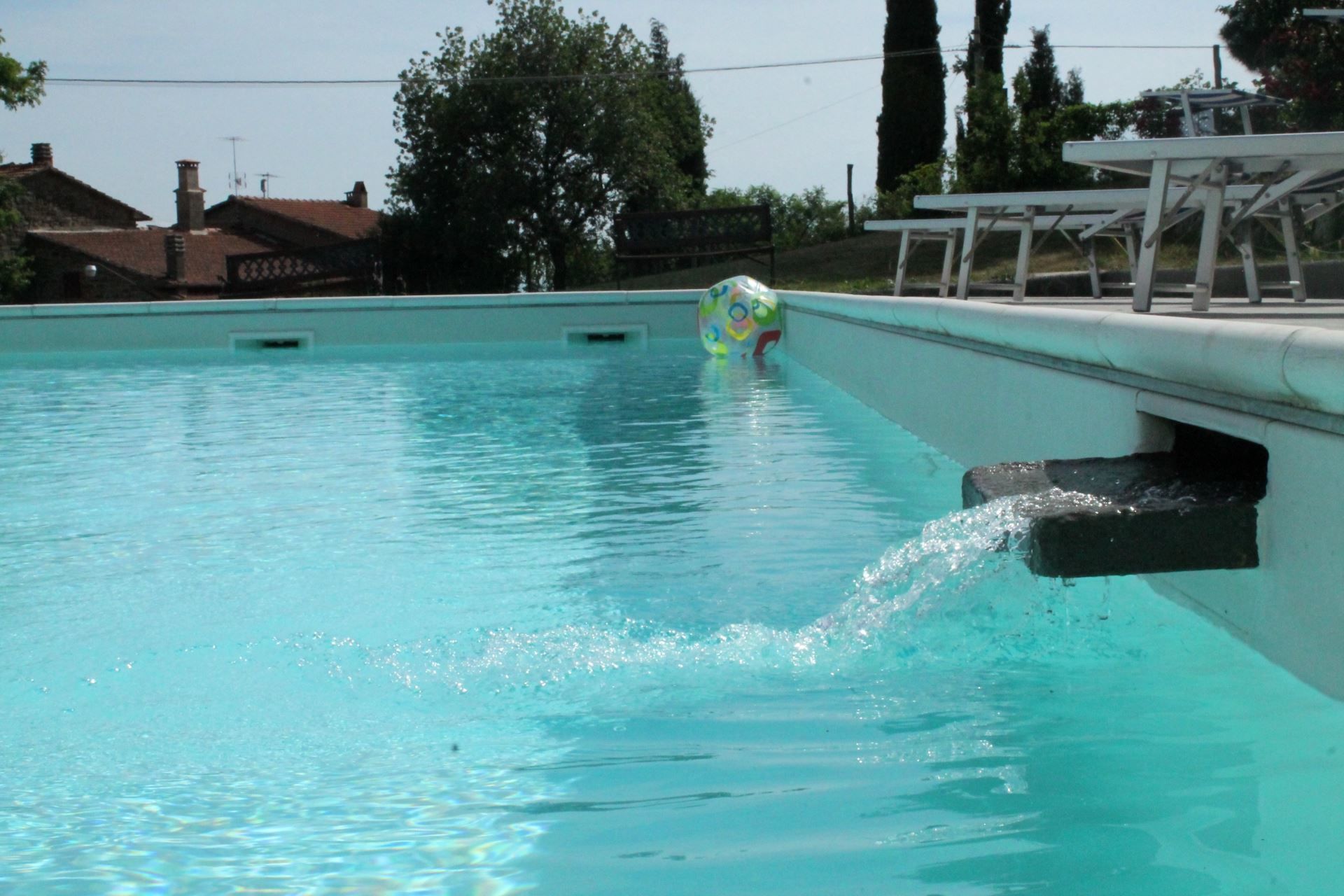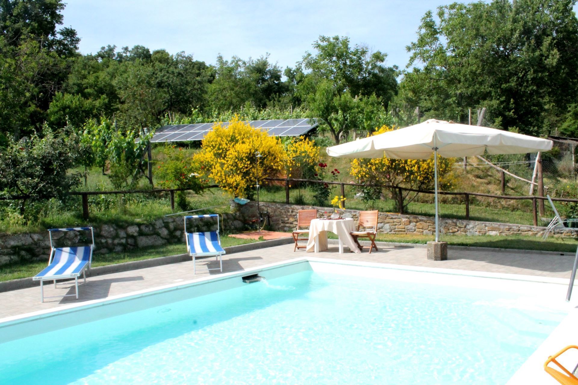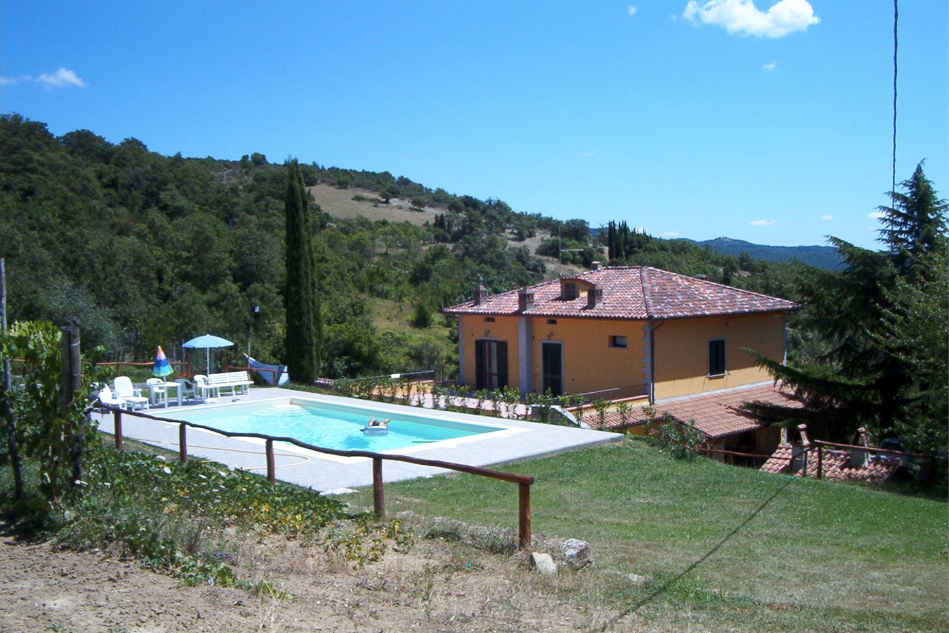 Il vecchio casolare ristrutturato ospita a piano terra alcuni locali usati saltuariamente dai proprietari e i due appartamenti per gli ospiti al piano superiore. Tramite una scala esterna in pietra avrete accesso ad un terrazzo solarium privato arredato con tavolo e sedie per mangiare all'aperto. Dal terrazzo potrete accedere sia agli appartamenti che, salendo qualche gradino, alla bella piscina (dimensioni m. 10x5, prof. m. 1-1,40 - aperta dal 11 Maggio al 28 Settembre), privata e attrezzata con lettini e ombrelloni. E’ nel terrazzo che trascorrete le vostre giornate al casolare. Al sole o al riparo sotto gli ombrelloni, con il fresco del mattino o alla brezza delle sere d’estate. La proprietà accetta animali di piccola taglia.