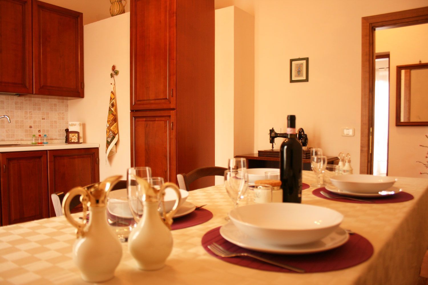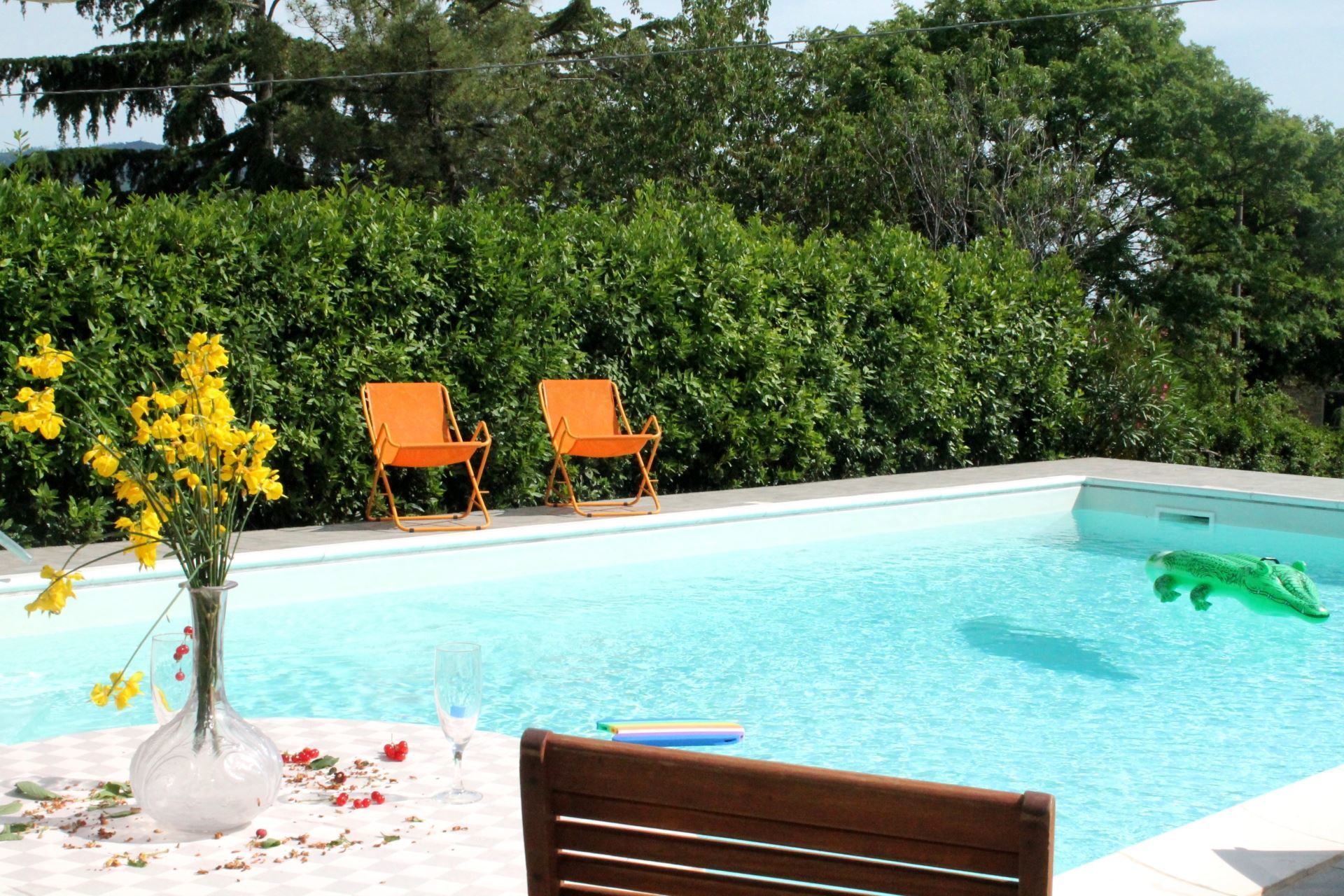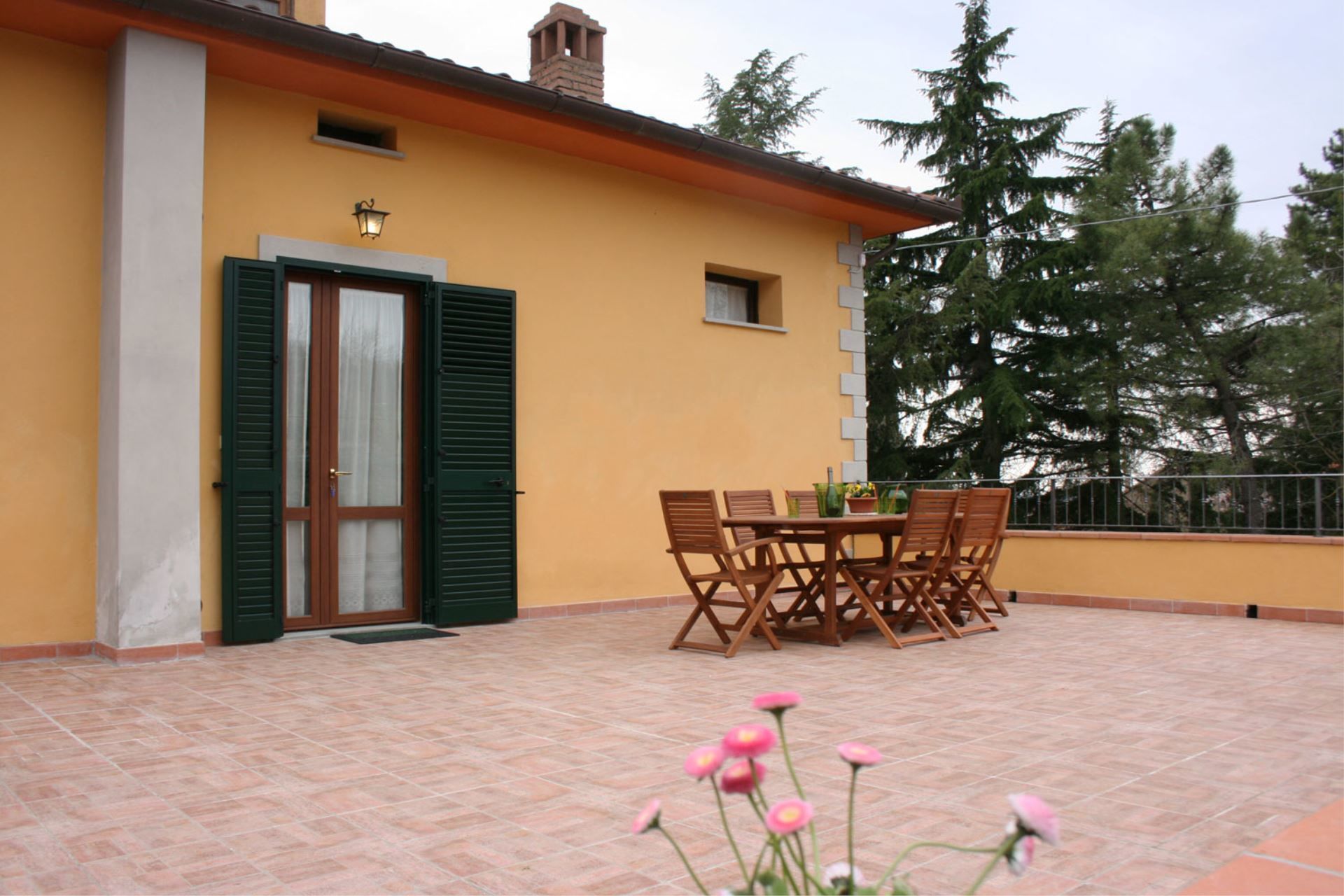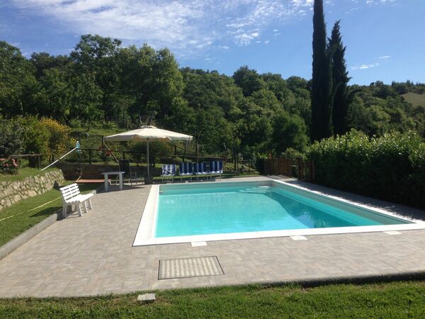 Il vecchio casolare ristrutturato ospita a piano terra alcuni locali usati saltuariamente dai proprietari e i due appartamenti per gli ospiti al piano superiore. Tramite una scala esterna in pietra avrete accesso ad un terrazzo solarium privato arredato con tavolo e sedie per mangiare all'aperto. Dal terrazzo potrete accedere sia agli appartamenti che, salendo qualche gradino, alla bella piscina (dimensioni m. 10x5, prof. m. 1-1,40 - aperta dal 11 Maggio al 28 Settembre), privata e attrezzata con lettini e ombrelloni. E’ nel terrazzo che trascorrete le vostre giornate al casolare. Al sole o al riparo sotto gli ombrelloni, con il fresco del mattino o alla brezza delle sere d’estate. La proprietà accetta animali di piccola taglia.