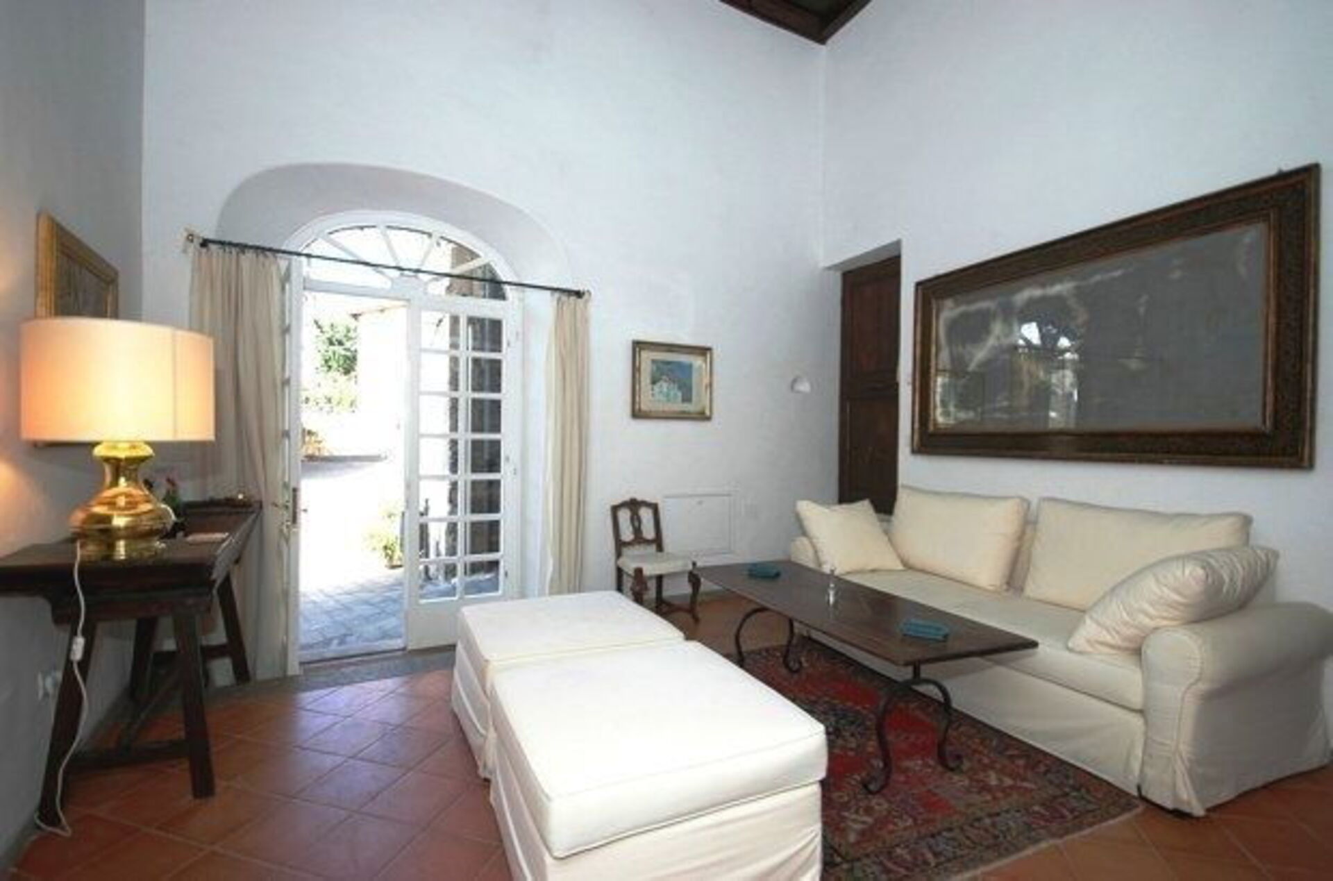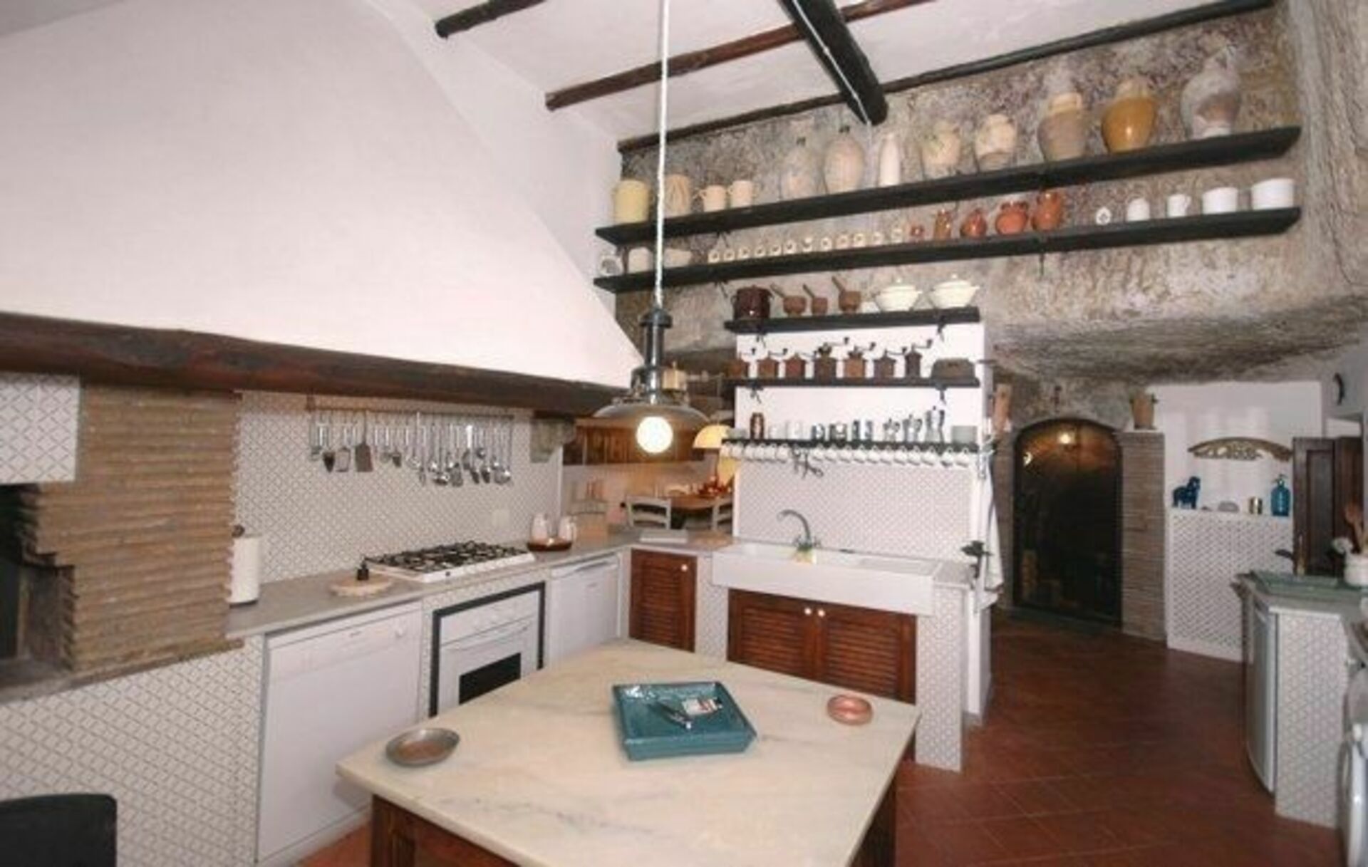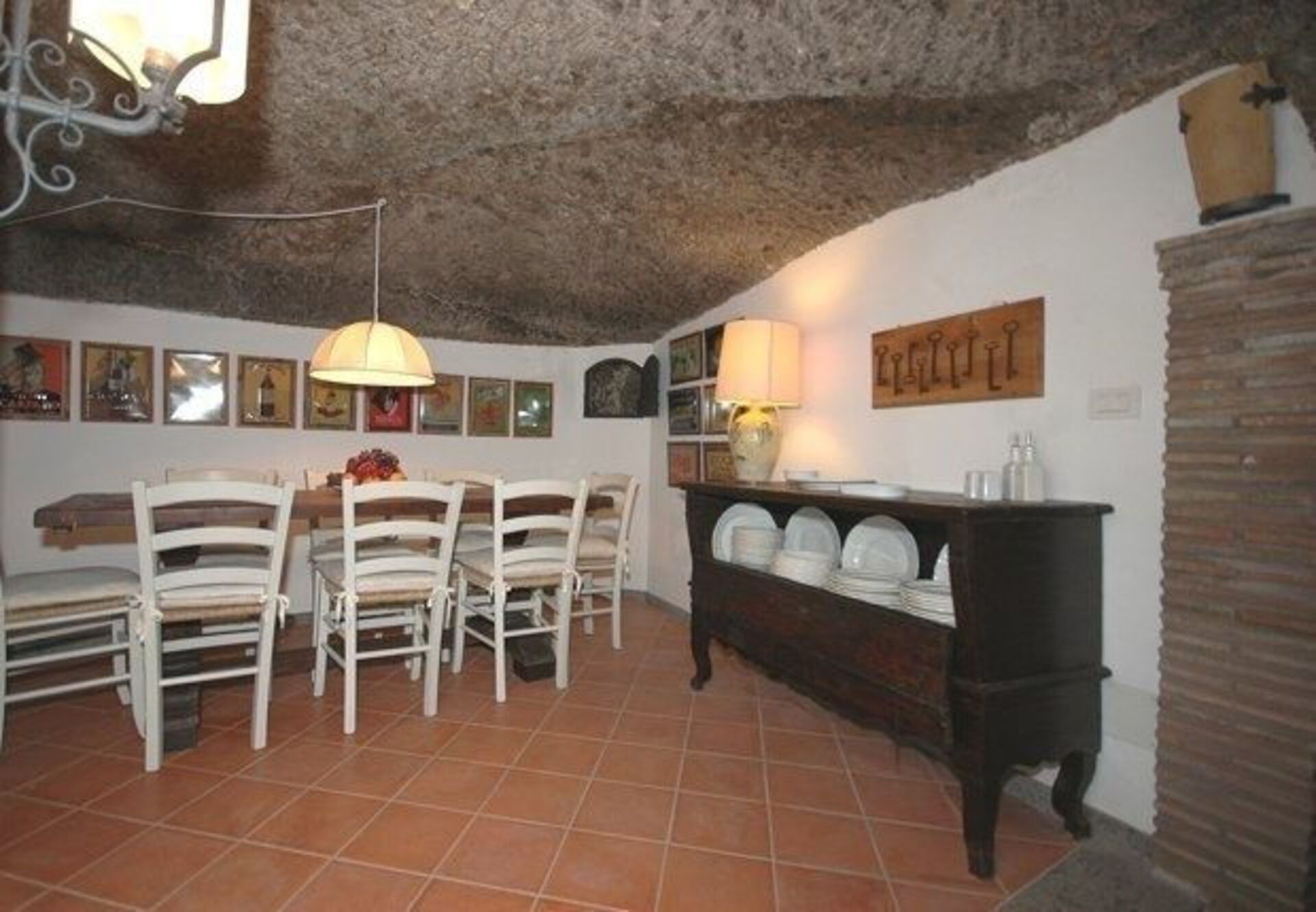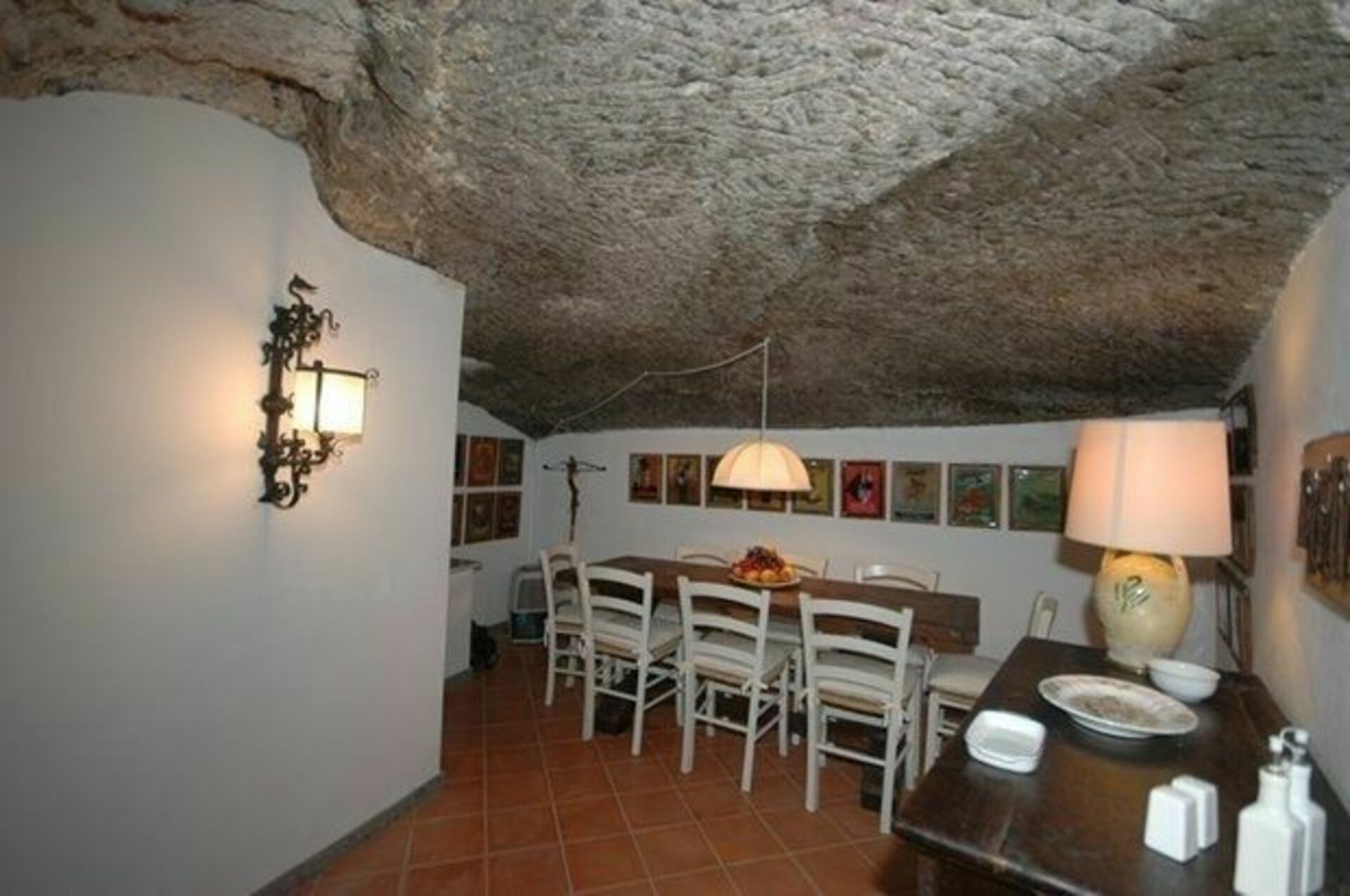 Piano terreno (accesso diretto dalla piazza): ingresso su un confortevole soggiorno su 2 livelli (2 gradini) a “forma di L”, studio (TV satellitare) con camino e divano letto matrimoniale, grande e caratteristica cucina (antico forno a legna, forno, freezer, lavastoviglie, lavatrice) con accesso diretto anche dalla piazza e suggestiva zona pranzo ricavata nel tufo, piccola cantina ricavata nel tufo, bagno con doccia.