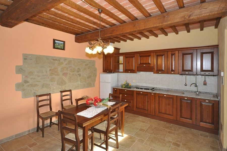80 m2 Piano terreno: ingresso su soggiorno con divano letto matrimoniale, zona pranzo e angolo cottura (freezer), 3 camere matrimoniali, bagno con doccia.