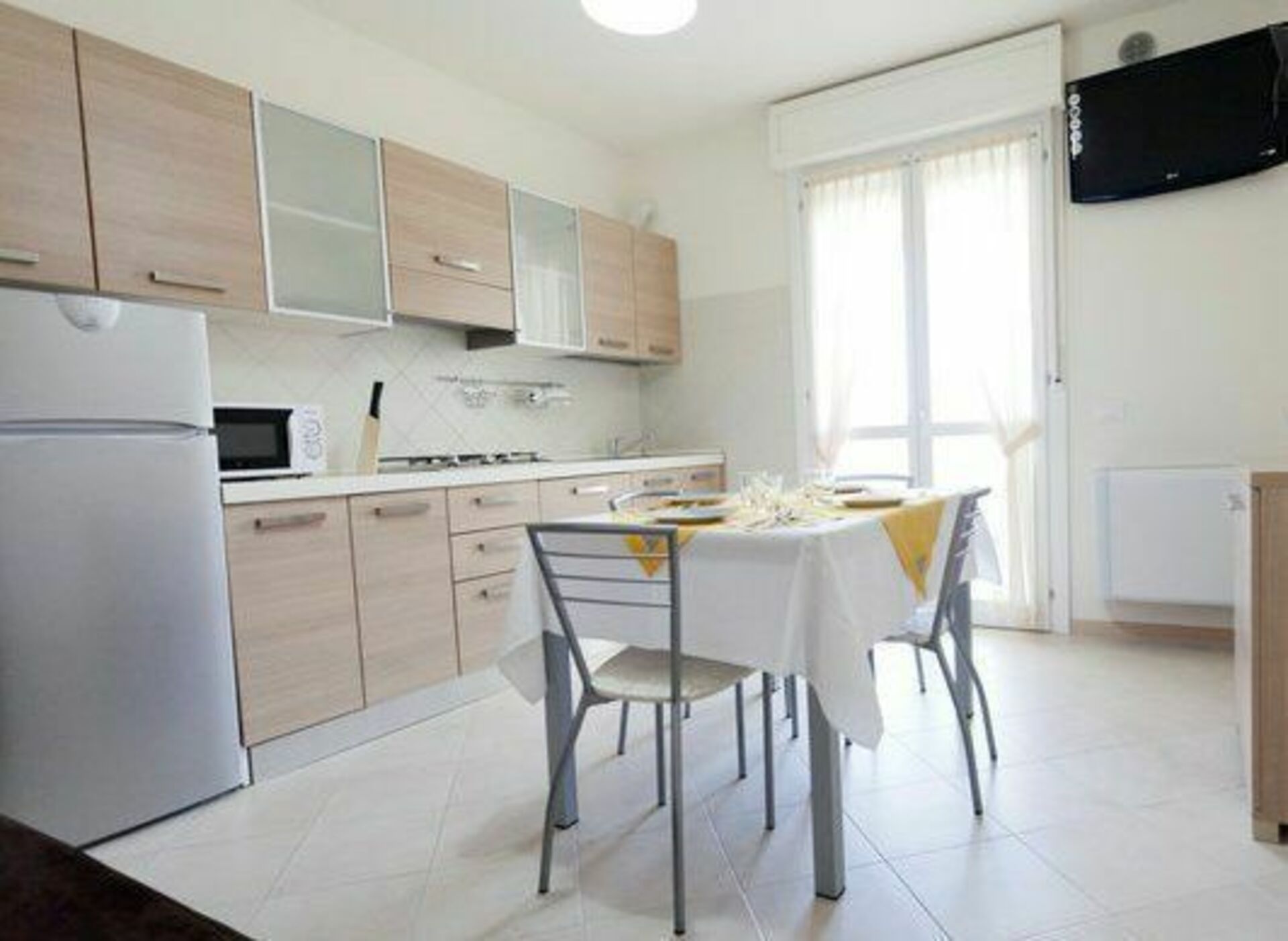 Ogni trilocale è dotato di ampio terrazzo con barbecue, impianto ad aria condizionata/riscaldamento, cassetta di sicurezza, tv satellitare, connessione Wi-fi, angolo cottura con forno a microonde, frigo con freezer, lavastoviglie e lavatrice.