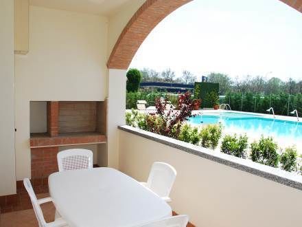 La piscina esterna è composta da un'ampia zona per adulti comunicante con una più piccola per bambini.