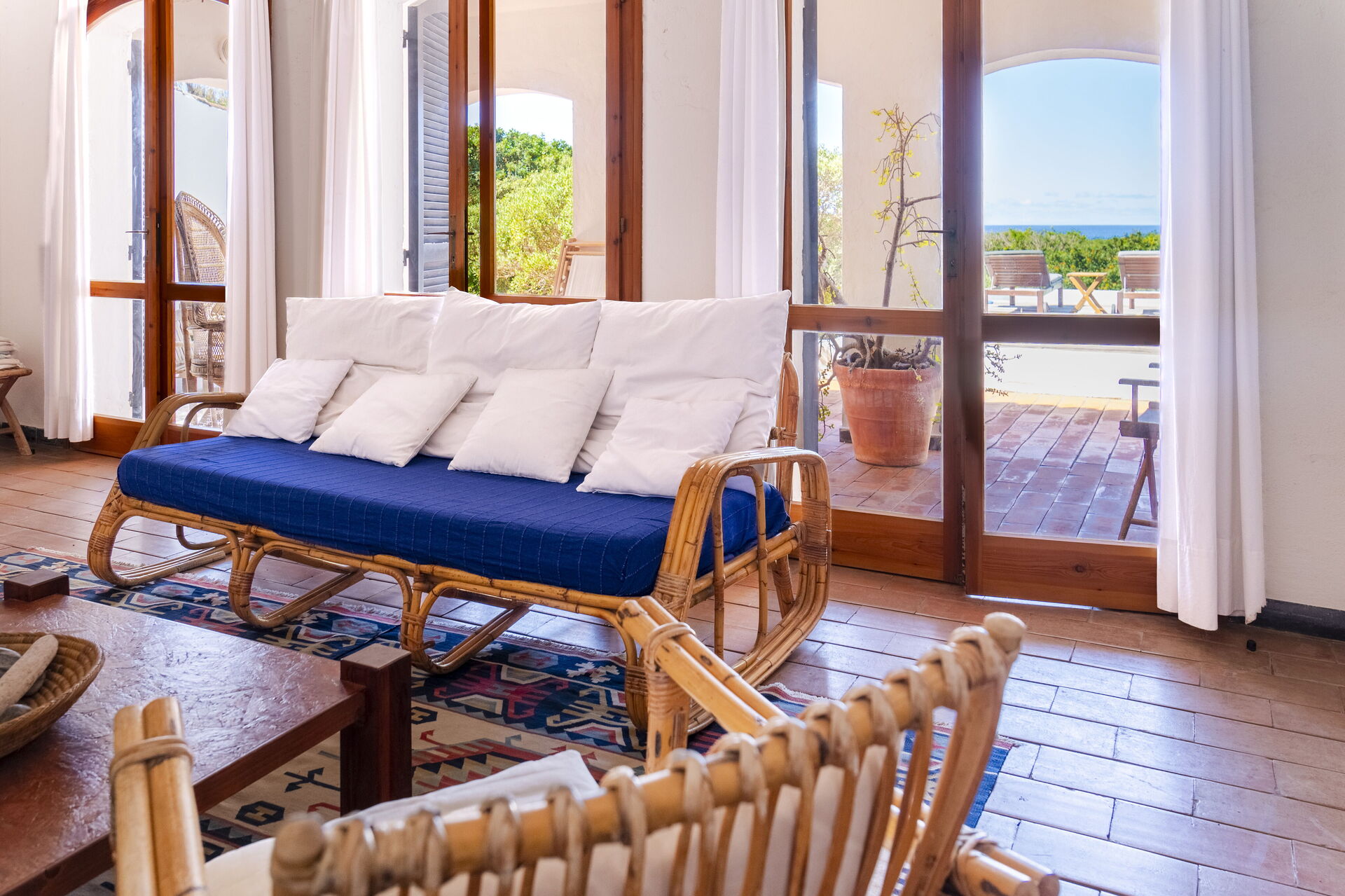 Se siete alla ricerca degli angoli più incontaminati della Sardegna, questa incantevole villa dotata di ogni comfort è ideale per voi. Si trova a 1,5 km da Porto Pino, località di mare che prende il nome dalla vasta pineta circostante. Quest'area è famosa per la sua bellissima baia di 4 km con spiagge di sabbia e maestose dune che si stagliano sul blu del mare. Casa dei Lentischi è su un unico livello, in una posizione appartata in mezzo alla tipica macchia mediterranea; la vista sul mare si può godere da diversi punti. Dalla villa si accede a due piccole spiagge di sabbia tra gli scogli - una a soli 100 m, l'altra a 700 m di distanza. Gli interni sono di gusto tipicamente sardo, e sono arredati in stile marinaro, semplice benché elegante.
