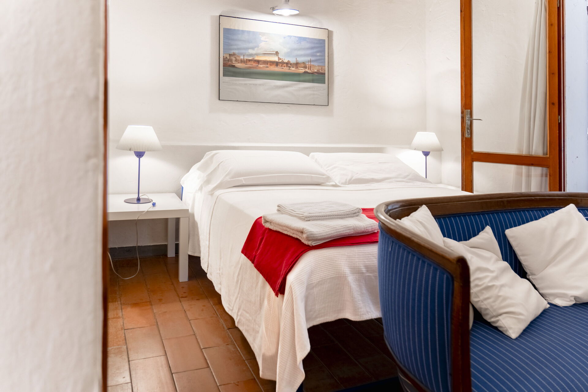 Camera da letto: letto matrimoniale, internet WIFI, ventilatore portatile, uscita sulla veranda.