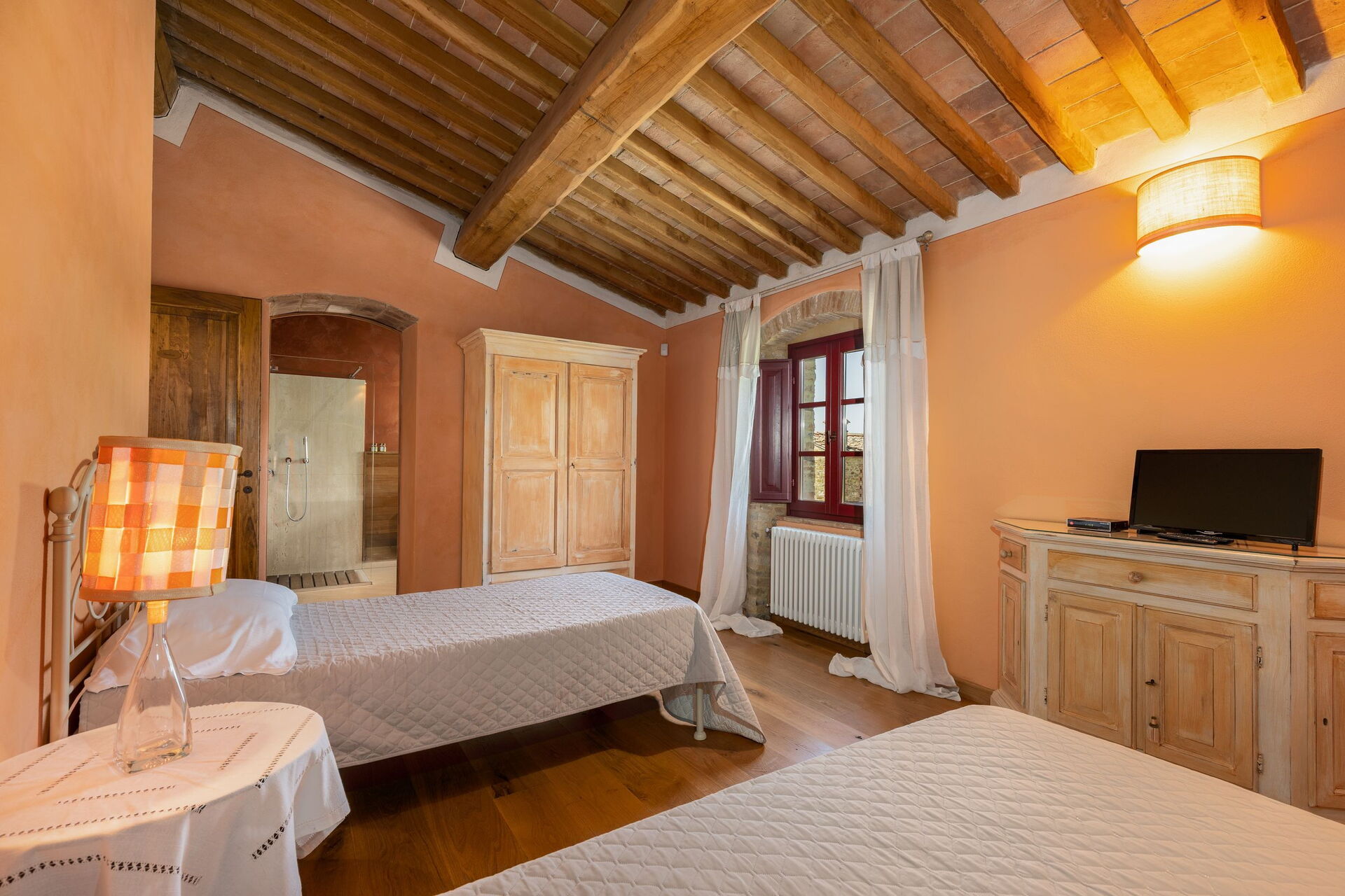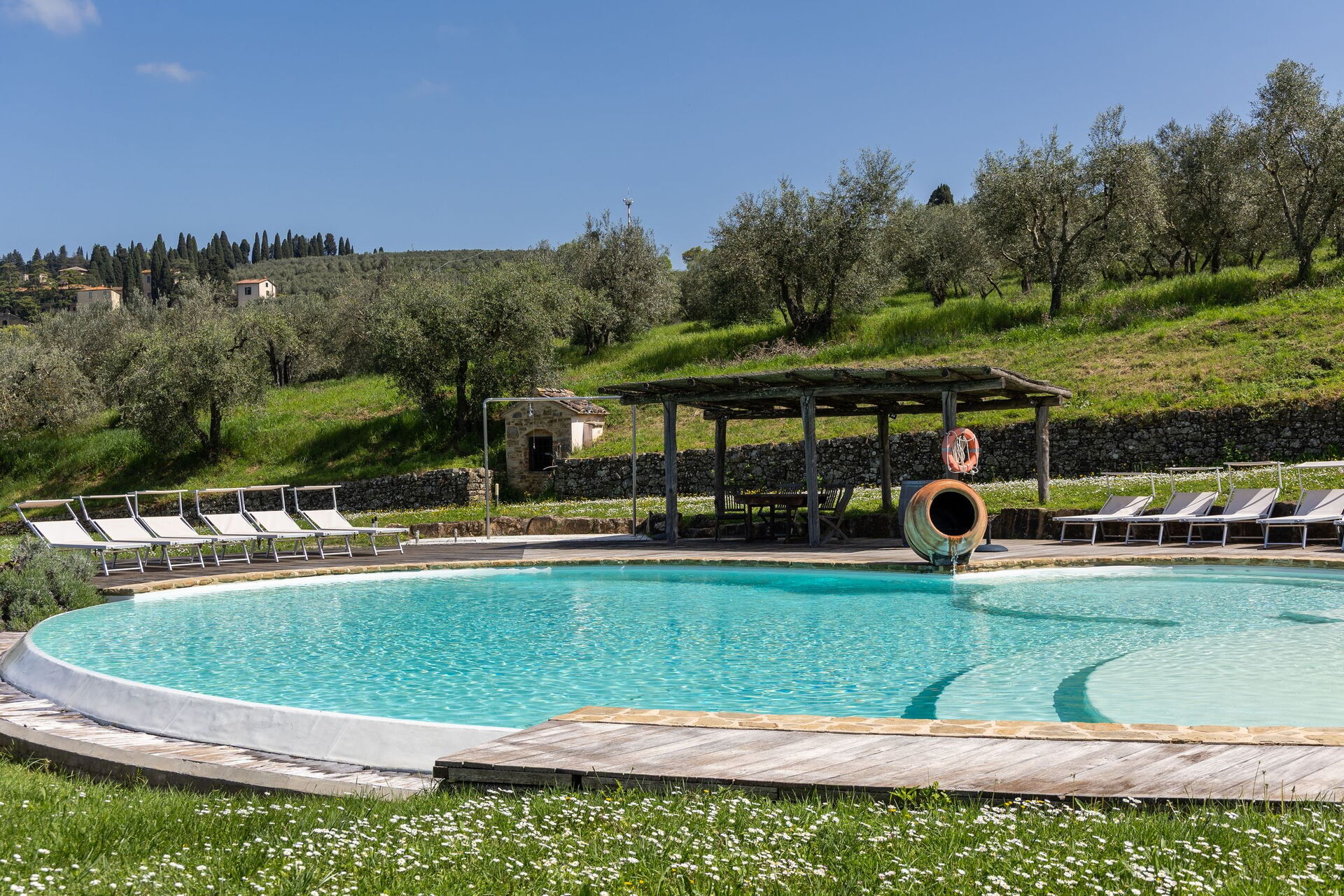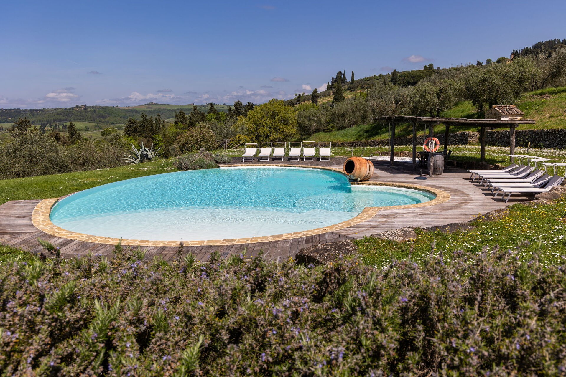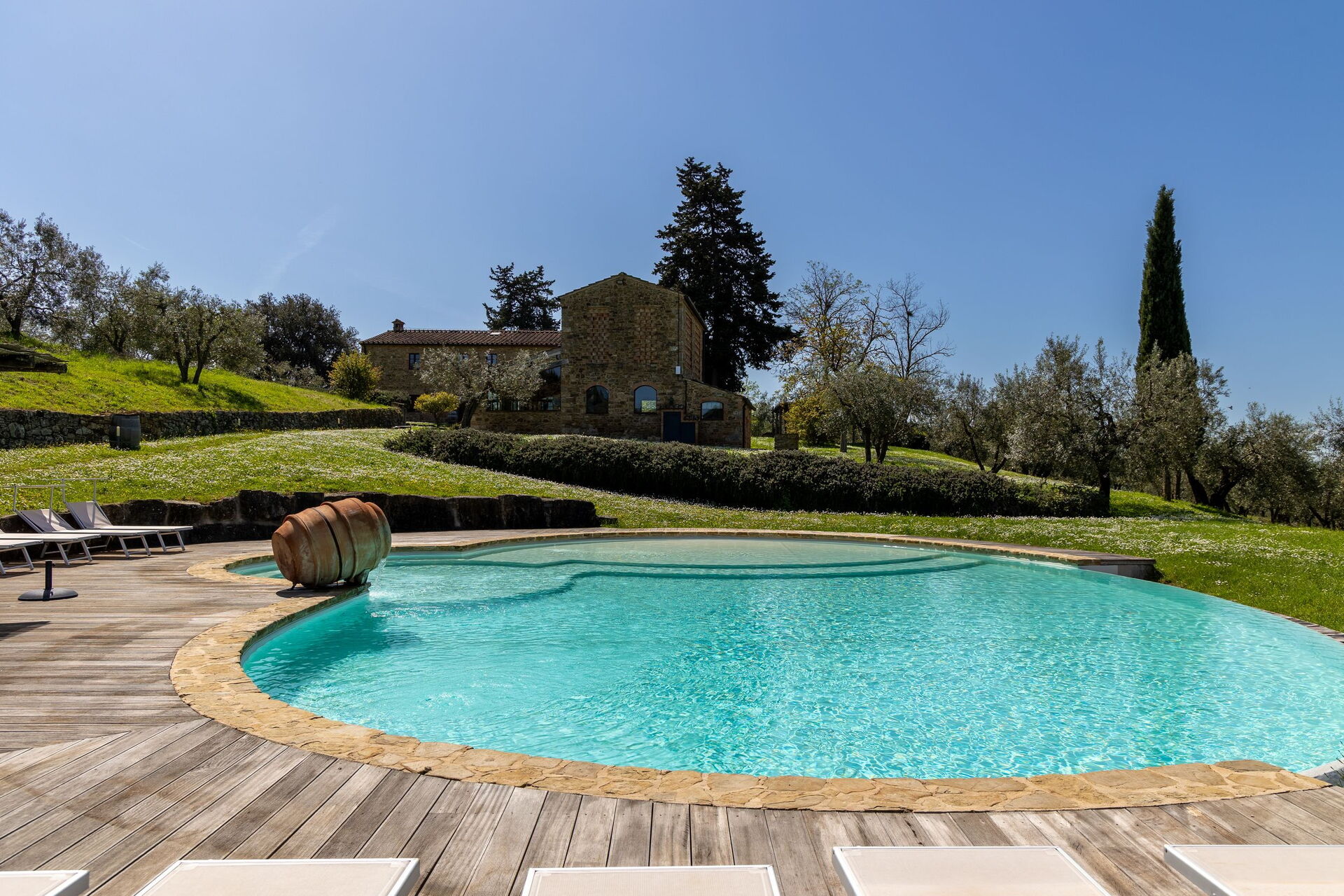 Bellissima villa indipendente con piscina privata situata in posizione strategica a metà strada tra Firenze e Siena. La proprietà è stata arredata con grande gusto e attenzione ai dettagli. All’esterno di trova un ampio giardino molto curato con une bella piscina in posizione panoramica. La villa, dotata di ogni comfort, è costituita da una casa principale e da una dependance e permette di ospitare fino a 12 persone. La proprietà è circondata da ettari di terra coltivata a vigneti ed oliveti da cui i proprietari producono vino e olio d’oliva (agli ospiti sarà offerta una degustazione nelle cantine dell’azienda agricola). La posizione geografica centrale della casa permette di raggiungere comodamente i più importanti centri d’interesse della Toscana come Siena, Firenze, San Gimignano e l’intera zona del Chianti con i suoi caratteristici paesi (Castellina, Greve, Radda, Gaiole ecc…).