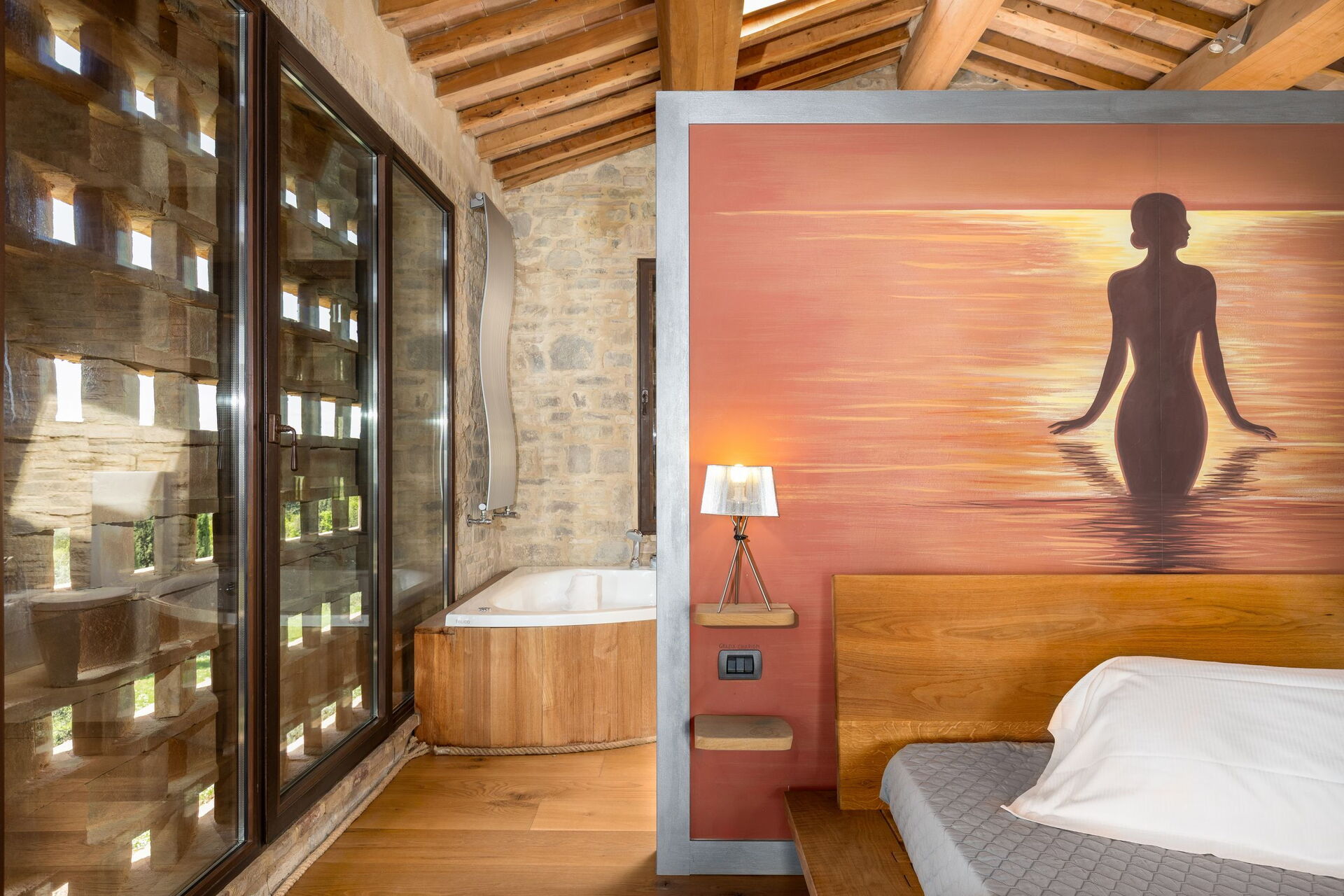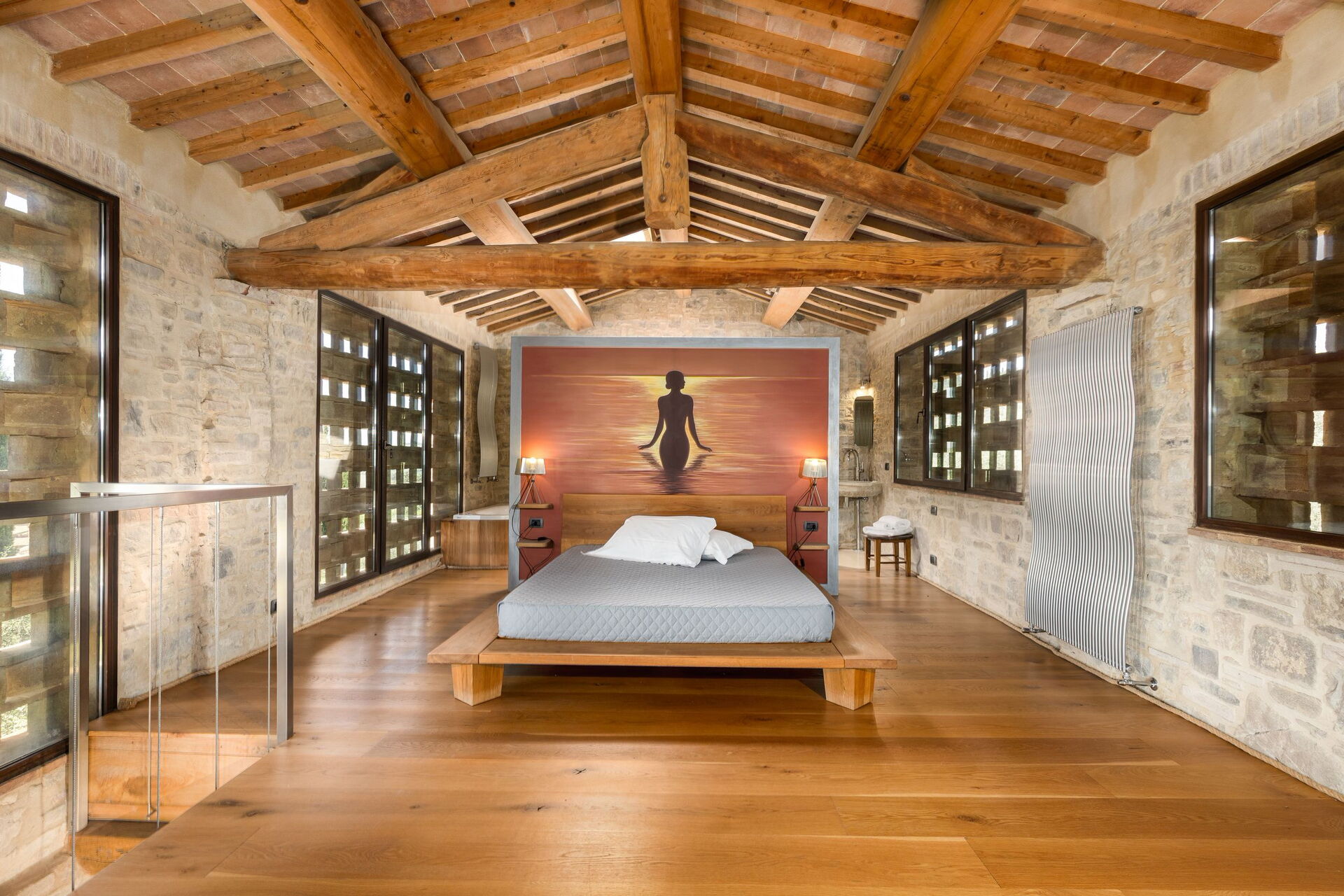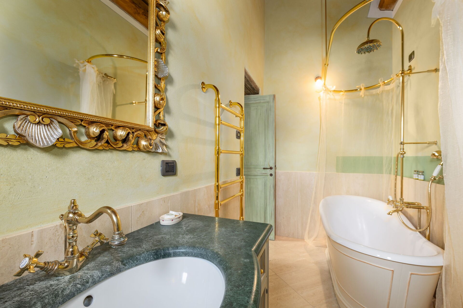 1° Piano: ampia camera matrimoniale con bagno (aperto sulla camera) con vasca idromassaggio.