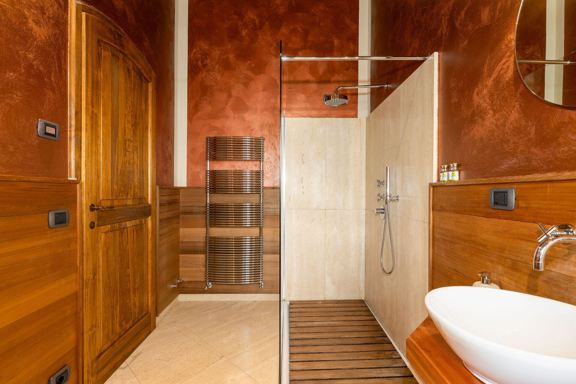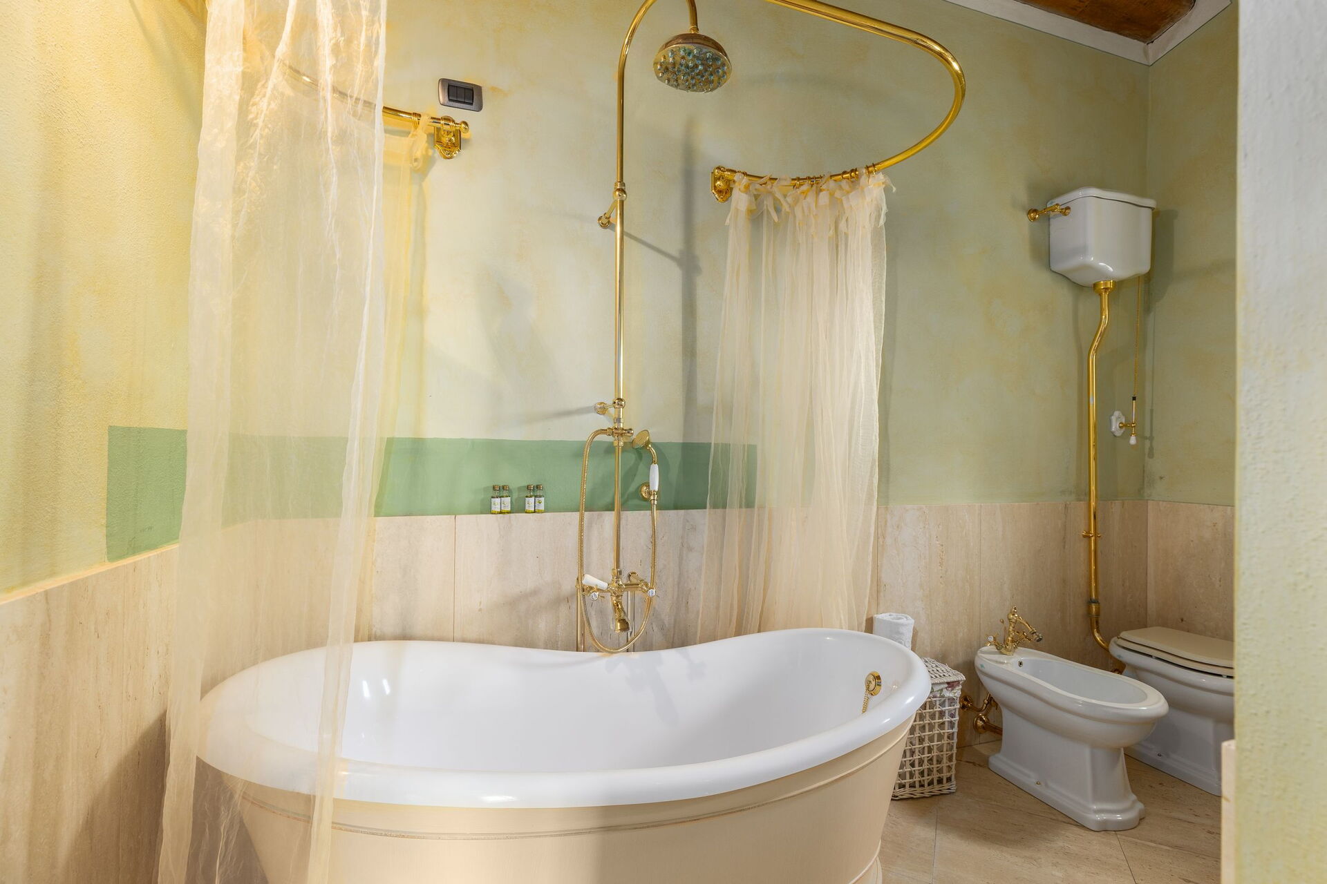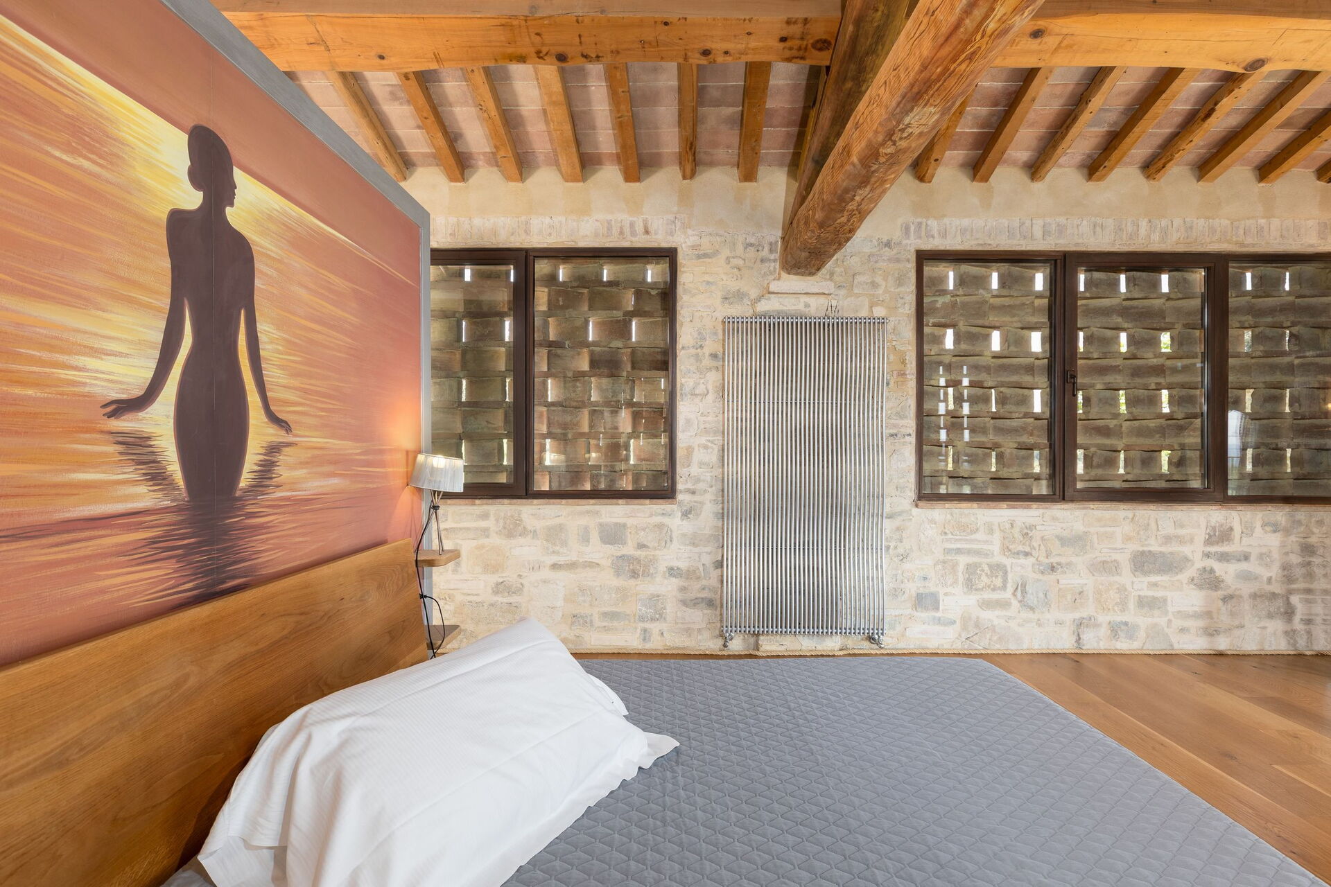 1° Piano: ampia camera matrimoniale con bagno (aperto sulla camera) con vasca idromassaggio.