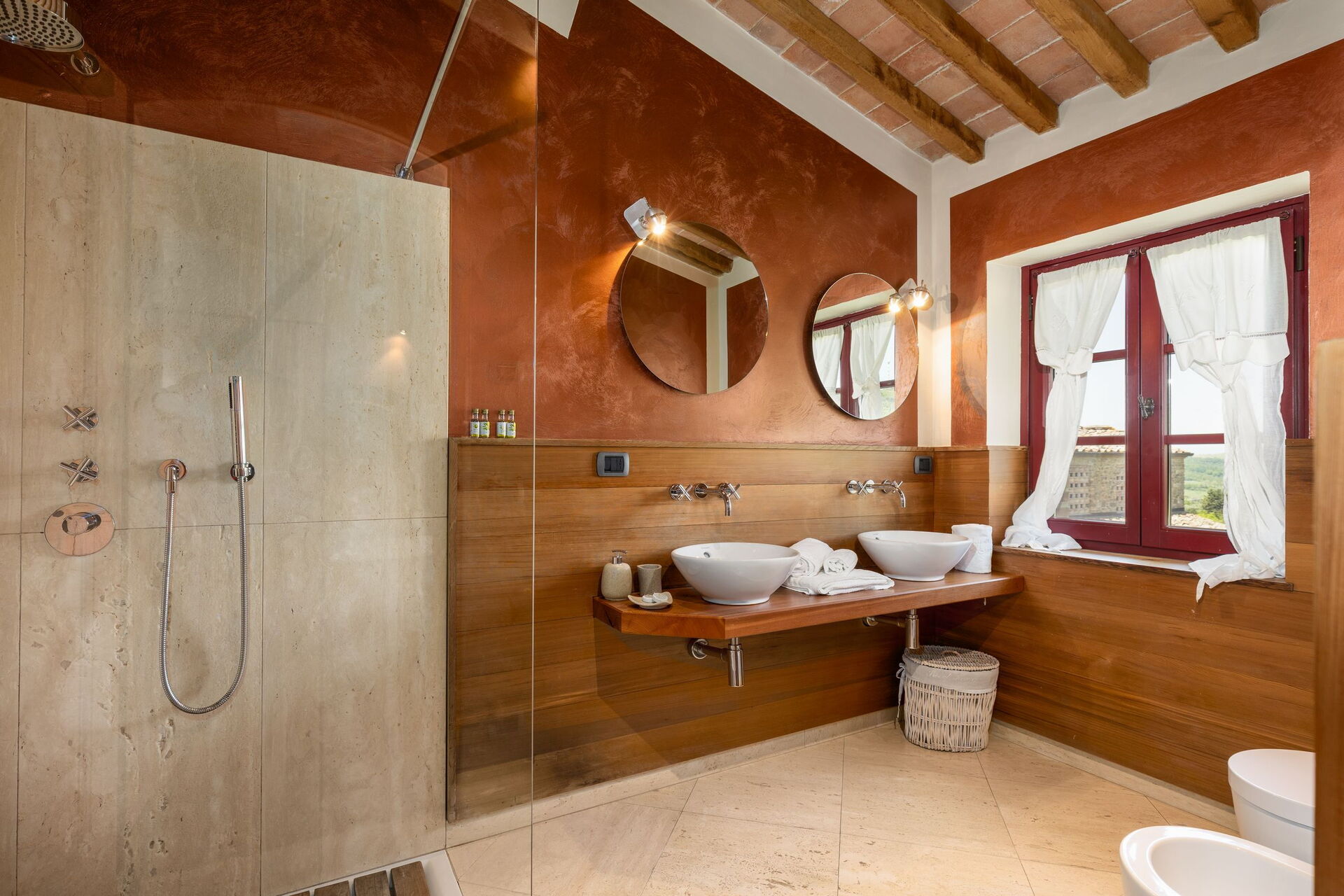 Wonderfull villa with great view to San Gimignano. Hidden on hillside in the middle of olive trees. All rooms with it's own style, everything is clean and new. All rooms with air condition. Renter produces it's own wine with fantastic taste and a grandiose olive oil. The renters crew is very obliging and helpfull from shopping sites to restaurants all over to technical issues. Gorgeous pool with a great view from inside the pool to the surrounding area and San Gimignano. Absolute recommendable for great holidays.