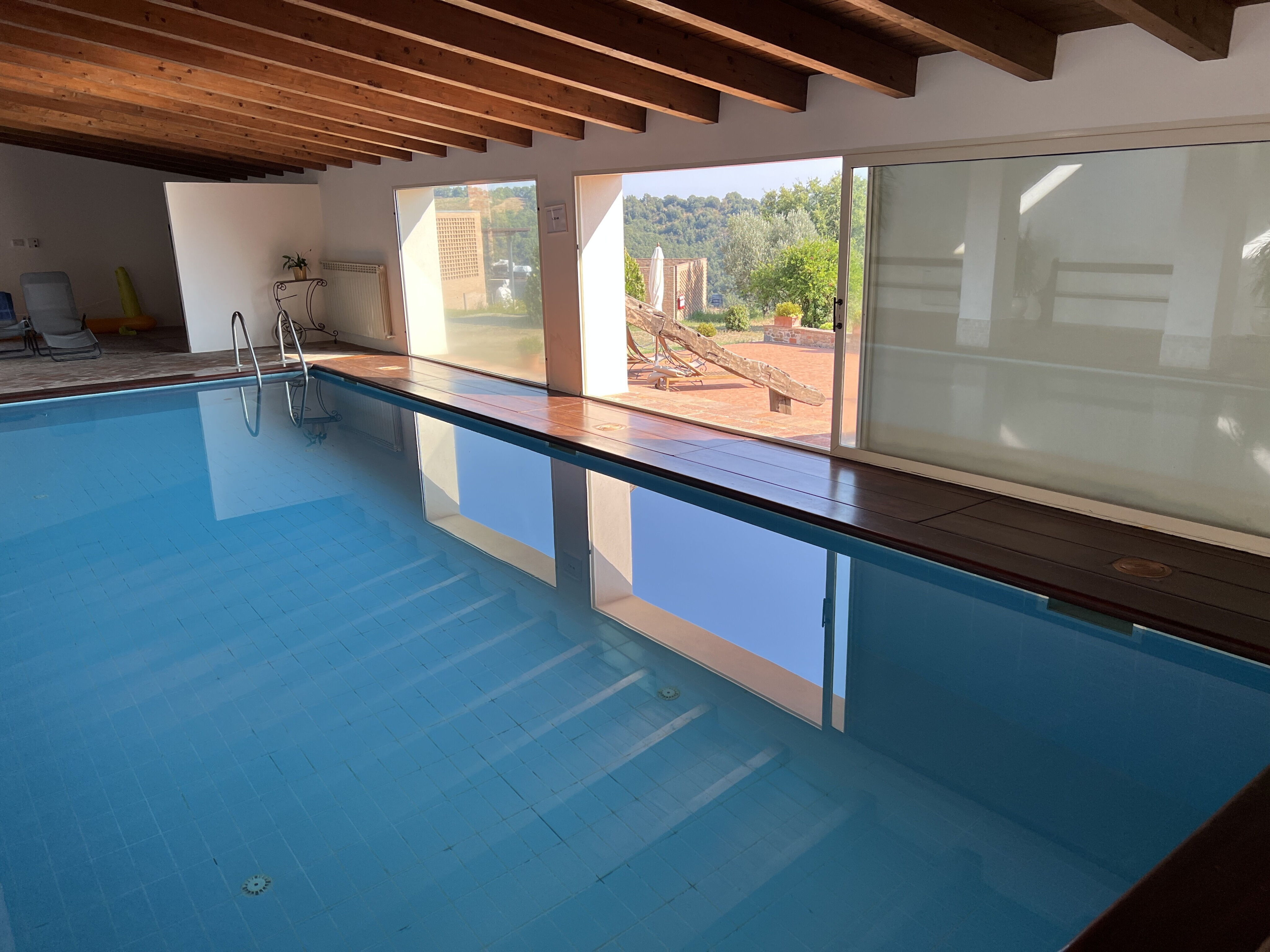 High quality villa, with pleasant gardens and covered pool, overlooking views of Tuscan countryside. Friendly staff. Hire a car to make the most of surrounding areas. Hilltop towns and coast short drive away. Shopping cette nearby too.