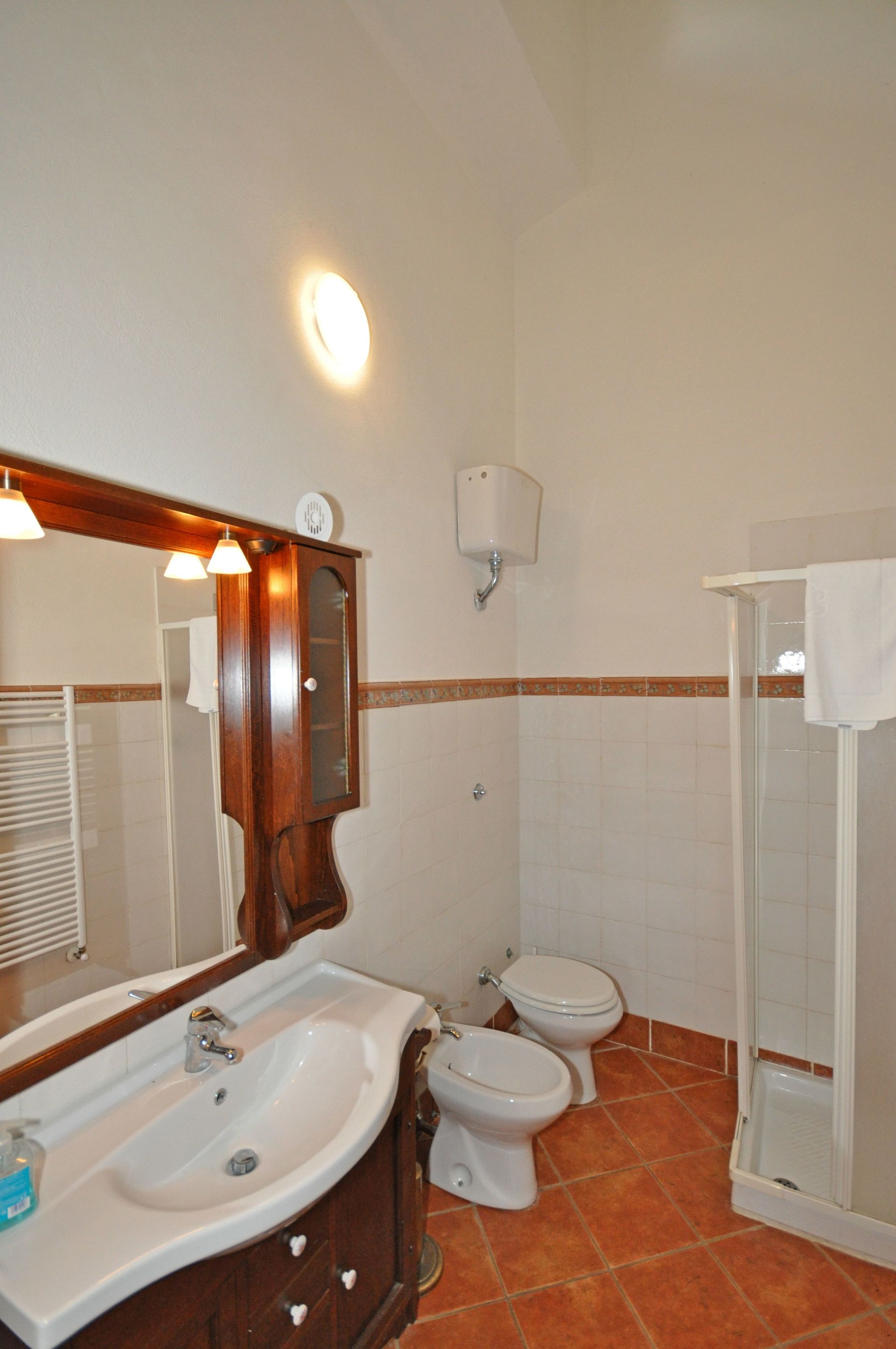 4 gradini più in basso: 2 camere matrimoniali, bagno con doccia.
