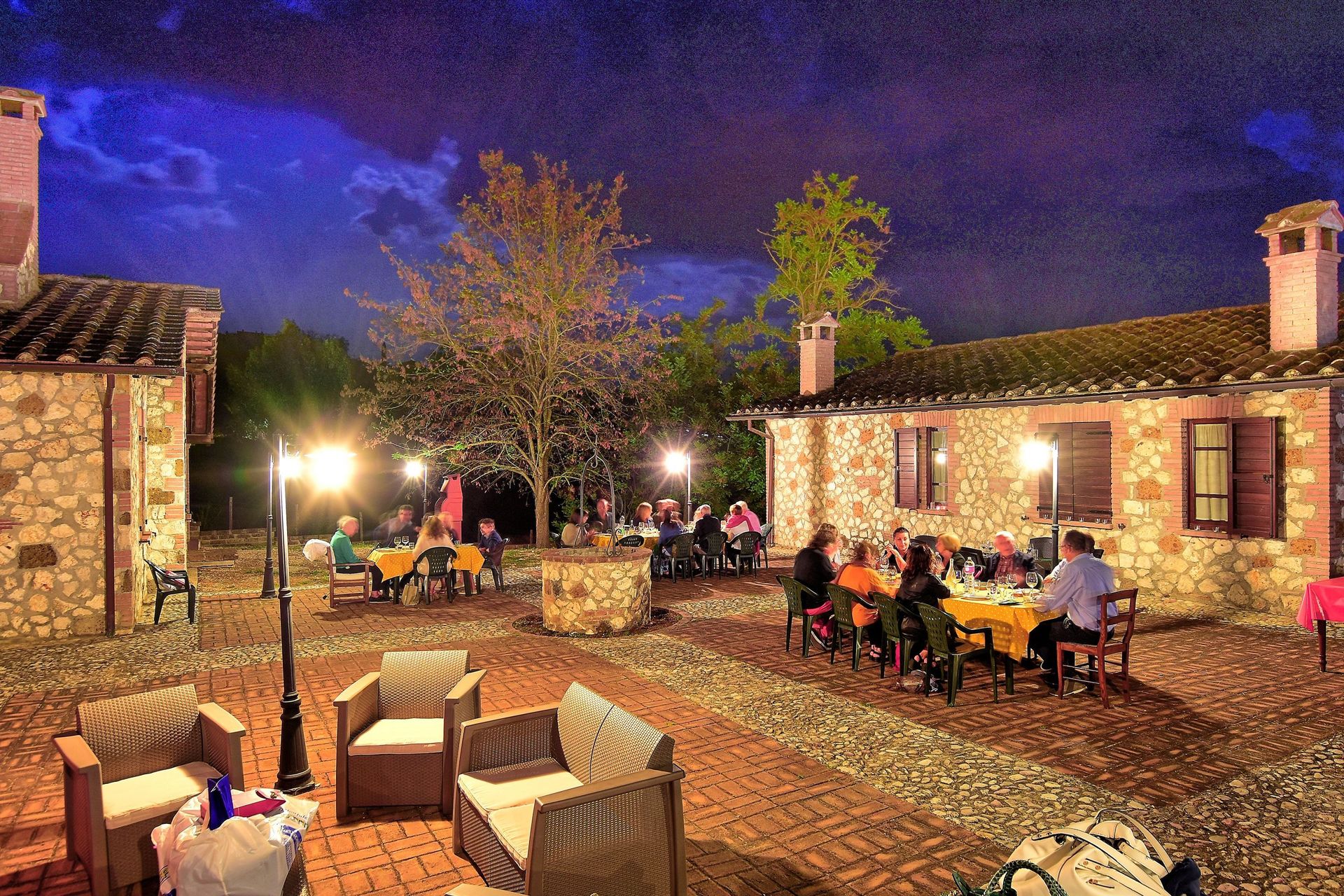 1° Piano: zona pranzo (TV satellitare) con camino e angolo cottura (forno, piccolo freezer).