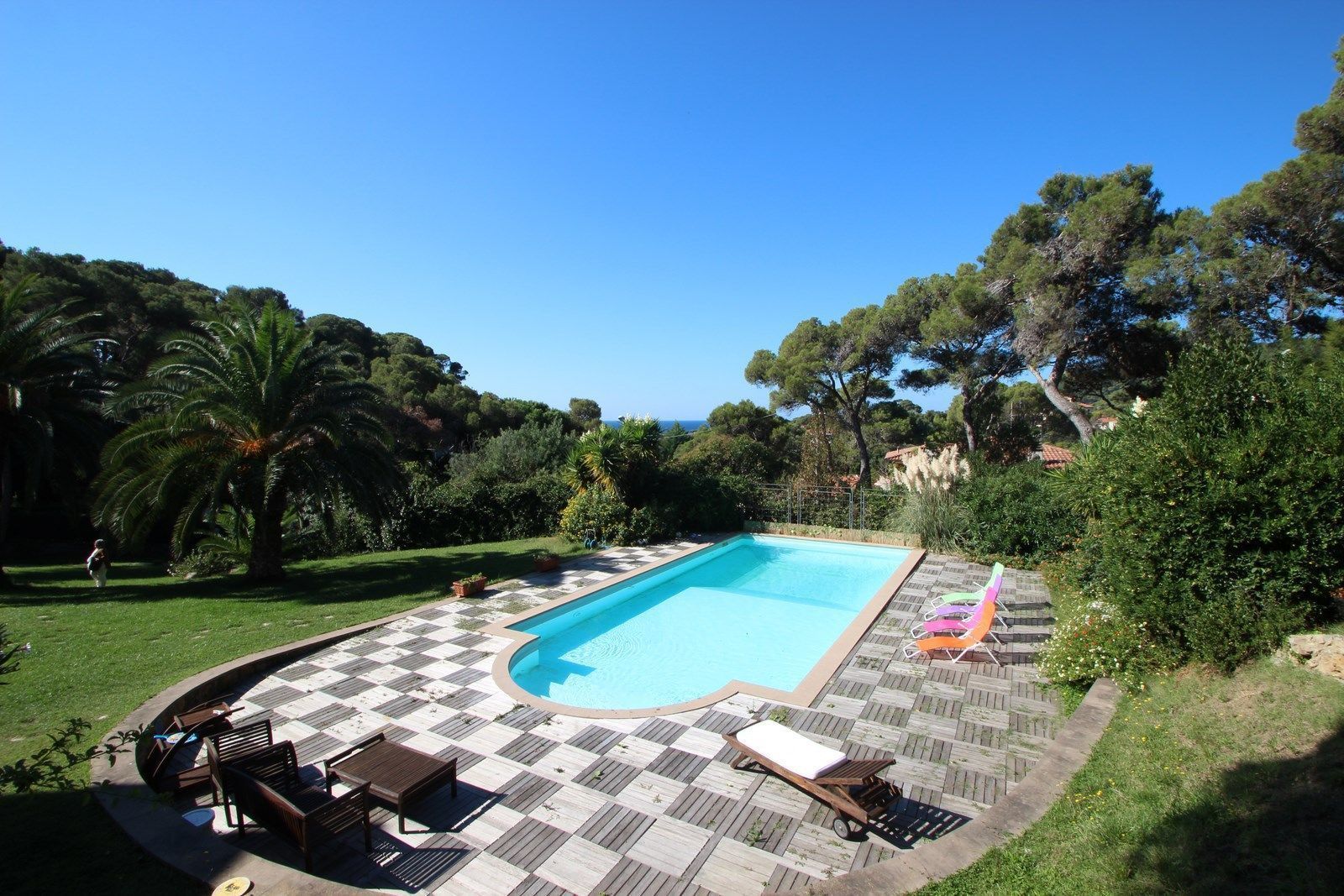 Poi salone con cucina, bagno, salottino, porta sul giardino e sulla piscina, piccolo ripostiglio.