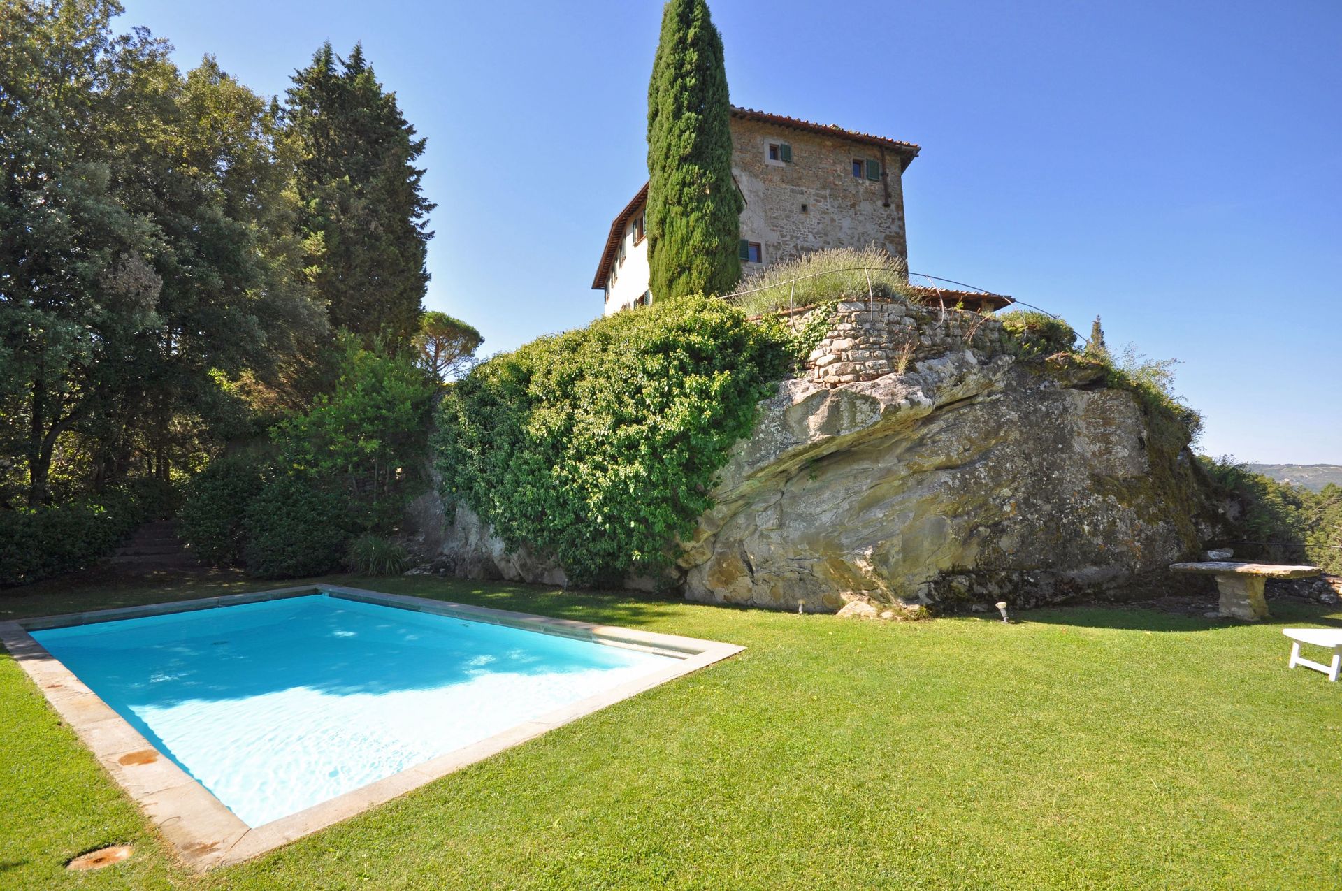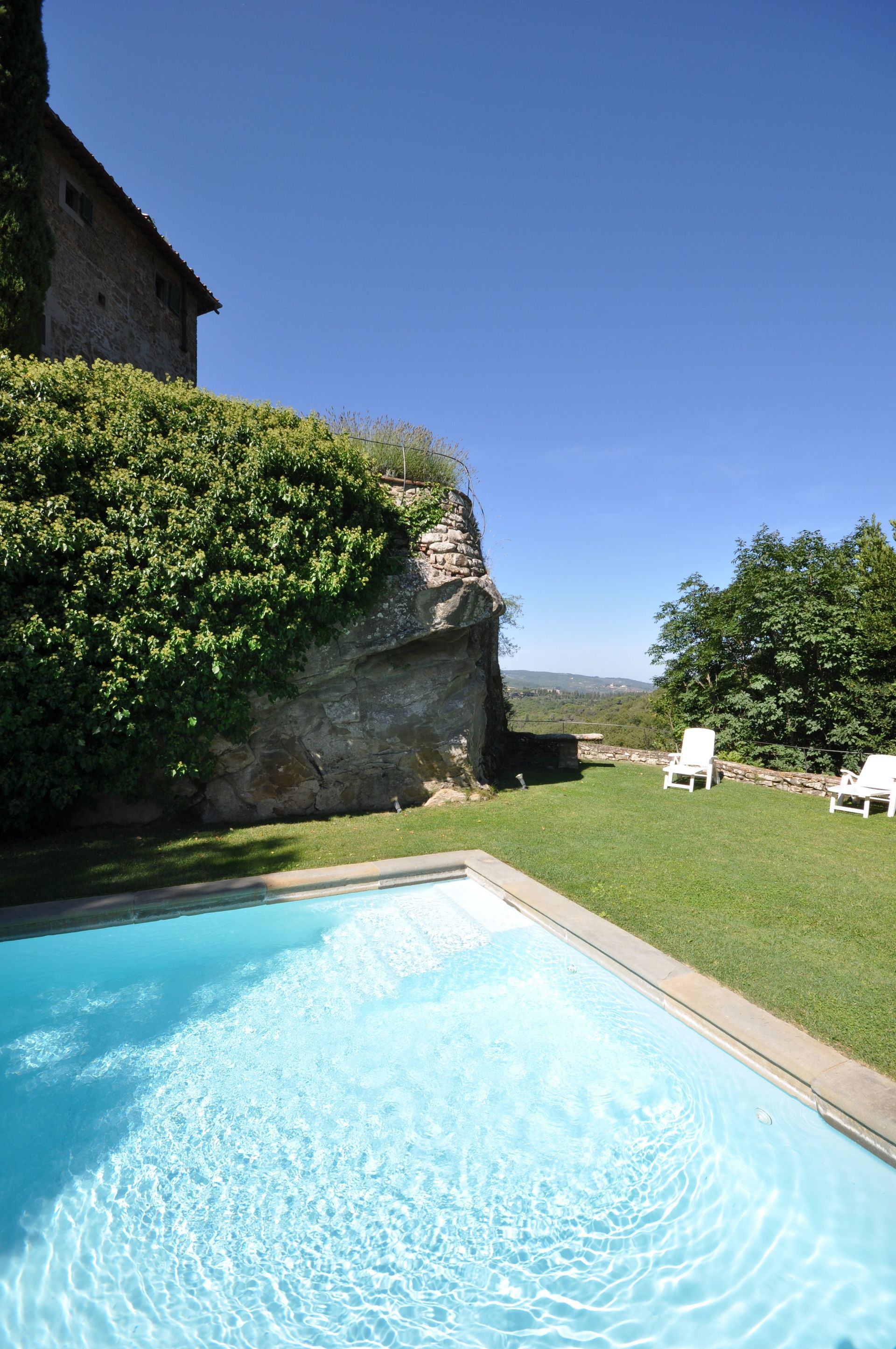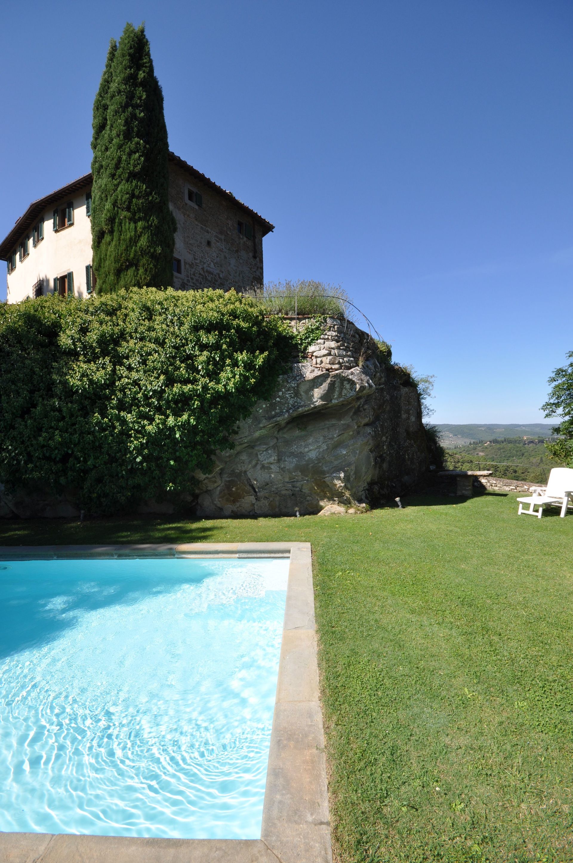 Bella villa indipendente con piscina privata situata nel cuore del Chianti Classico a circa 3 km dal famoso paese di Greve in Chianti. La villa si trova sulla cima di una collina da cui si domina l’intera vallata con boschi, campi coltivati, oliveti e vigneti. Il nucleo originario della struttura risalente all’ XI secolo era anticamente una fortezza che venne completamente distrutta dopo la guerra tra fiorentini e senesi intorno al 1530. La villa padronale, successivamente ricostruita, presenta ancora oggi le caratteristiche architettoniche originarie: ampi saloni, numerose finestre, soffitti a cassettone e travi a vista. La villa è arredata in modo confortevole e offre uno spazio esterno (in parte pavimentato e in parte a prato).