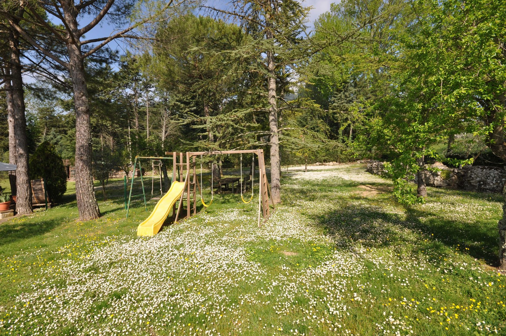 A disposizione degli ospiti: ampio giardino completamente recintato, piscina parzialmente fuori terra (7,5 m x 4,5 m - profondità 1,1 m - aperta dal 01/05 al 30/09), area giochi per bambini (scivolo e altalena), area barbecue (barbecue e forno a legna);. La casa dispone di collegamento ad internet WI-FI gratuito.
