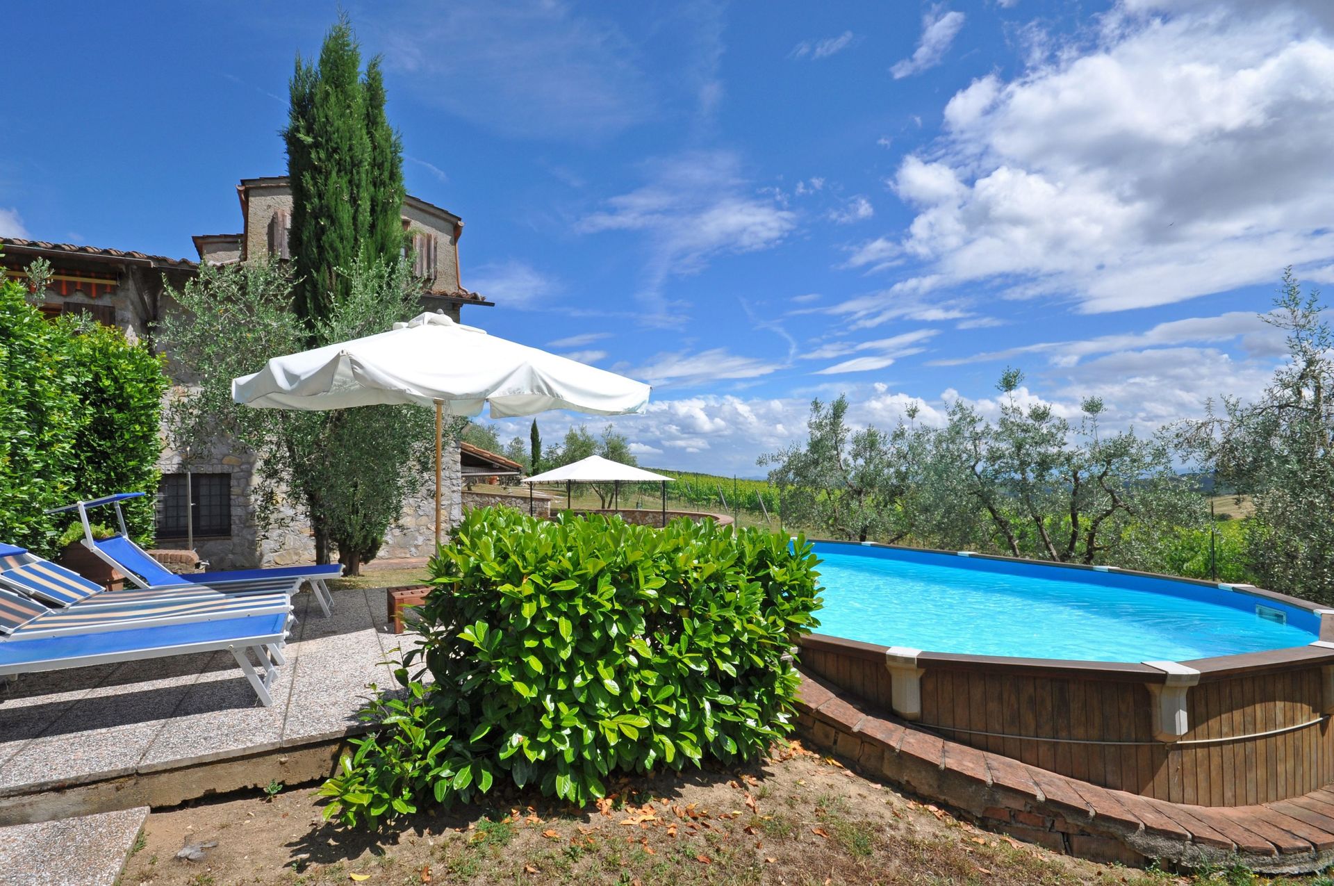 Casa indipendente con piscina privata situata nel Chianti Classico in un antico borgo di case, circondata da vigneti, oliveti e boschi. Il paese di Gaiole in Chianti dista solo 10 km e gli altri paesi del Chianti Classico (Radda, Castellina, Greve ecc…) sono facilmente raggiungibili in auto. La casa è confortevole, si sviluppa su due livelli (collegati anche internamente tramite una scala a chiocciola) ed offre agli ospiti uno spazioso giardino molto curato con piscina (parzialmente fuori terra).