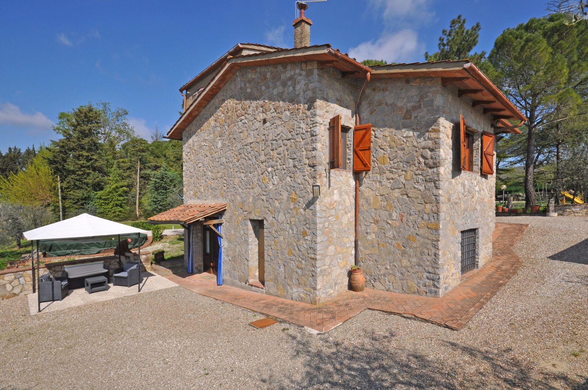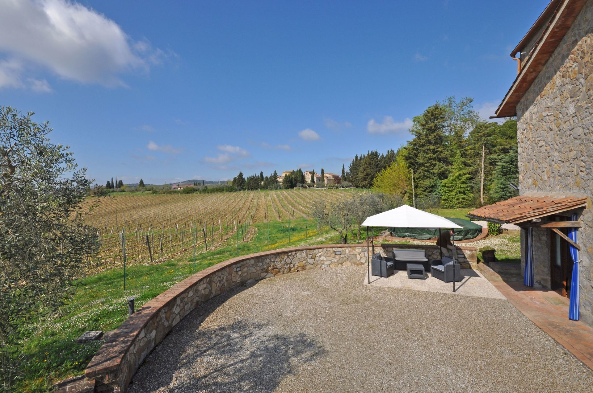 Distanze: il piccolo paese di San Sano con negozio di alimentari e ristorante a circa 500 metri, Gaiole in Chianti con negozi di ogni genere a 10 km, Siena a 25 km, Rapolano Terme (rinomato centro termale) a 35 km, San Gimignano a 55 km, Volterra a 65km, Firenze a 65 km, Montalcino a 65 km, Arezzo a 70 km, Montepulciano a 70km, Pienza a 75 km.