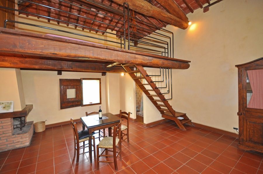 2° Piano: soggiorno con camino, zona pranzo e angolo cottura, bagno con doccia.