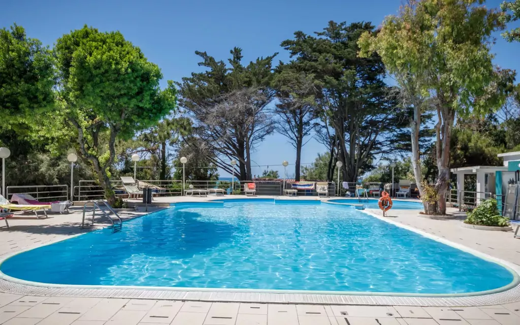 Il villaggio vacanze "Miramare" è una sistemazione ideale per le famiglie, offrendo un giardino naturale, una grande piscina (20 x 9 m) con una profondità di 270 cm e una piscina per bambini disponibile stagionalmente da maggio a settembre. La proprietà offre servizi come una doccia esterna, un'area barbecue, un'area giochi per bambini, una reception, un ristorante, un bar, internet wifi, ping pong, una terrazza solarium e noleggio biciclette. È disponibile un parcheggio a 100 m dalla proprietà e il carico/scarico dei bagagli è possibile presso la casa vacanza. Piani di pagamento rateale potrebbero essere disponibili per la vostra convenienza.