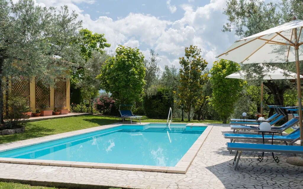 Il giardino recintato di 1 ettaro è punteggiato da alberi e offre uno spazio generoso e privato per la vita all'aperto. La piscina misura 8 x 4 metri con profondità uniforme di 120 cm, è mantenuta mediante un sistema di pulizia a elettrolisi salina ed è disponibile dal 1° giugno al 30 settembre; nella zona piscina sono presenti una doccia dedicata e un WC, oltre a una doccia esterna aggiuntiva. Un patio, un pergolato e una pergola forniscono zone d'ombra durante la giornata, mentre la terrazza rappresenta lo spazio ideale per i pasti all'aperto e il relax. Sono forniti mobili da giardino; un barbecue e un camino esterno sono a disposizione per le serate conviviali. Un tavolo da ping-pong aggiunge una dimensione ricreativa agli spazi esterni. All'interno dell'oliveto è presente una zona dedicata allo yoga e alla contemplazione del paesaggio.